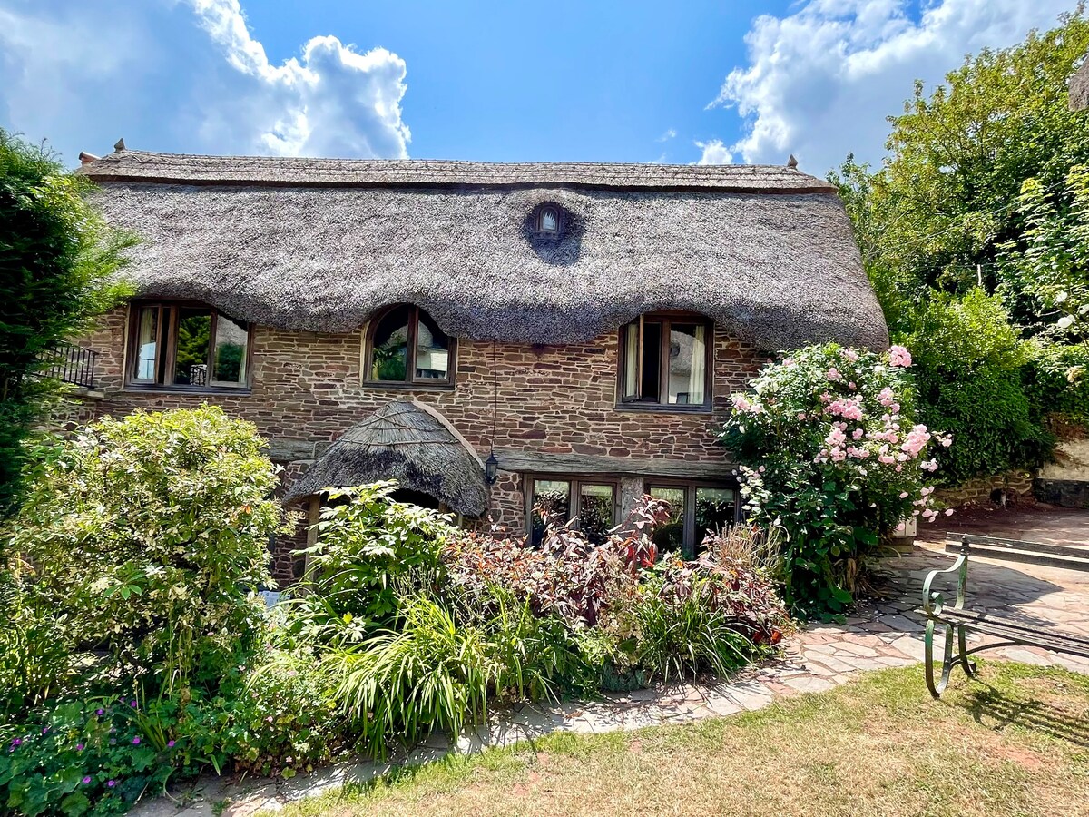 Higher Lodge, cottage au toit de chaume dans le Devon