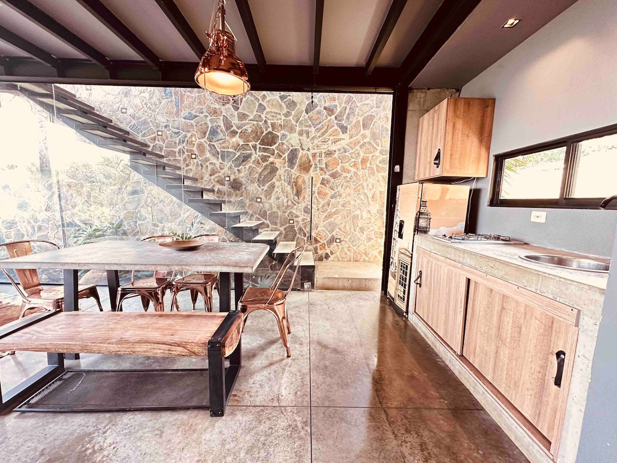 Maison moderne et spacieuse au milieu de la nature ; attention particulière aux détails et au design intérieur avec un concept boho. Elle dispose de 2 chambres spacieuses (l'une avec un lit gigogne supplémentaire), chacune avec salle de bain privée et douche extérieure. Grande salle à manger, cuisine avec : cuisinière, lave-vaisselle, réfrigérateur, friteuse, vaisselle. Grande terrasse qui entoure un jacuzzi confortable et climatisé, face à une culture spectaculaire de café, que vous pouvez apprécier comme une courtoisie.