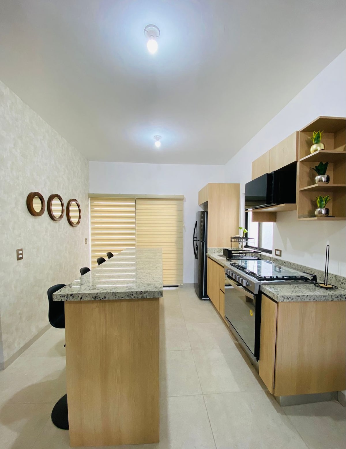 Détendez-vous dans cet espace calme et élégant. Profitez d'un appartement entièrement équipé et NEUF. Écran de 70” dans l'espace social et de 55” dans les chambres. Grandes salles de bains, placards, buanderie, lits queen size, mini-split dans toutes les pièces, cuisine équipée, accès au toit avec vue panoramique. Nous combinons le bon goût et la modernité avec le confort. Proche des restaurants et des super marchés. Profitez de votre séjour dans notre appartement conçu pour répondre à vos besoins.