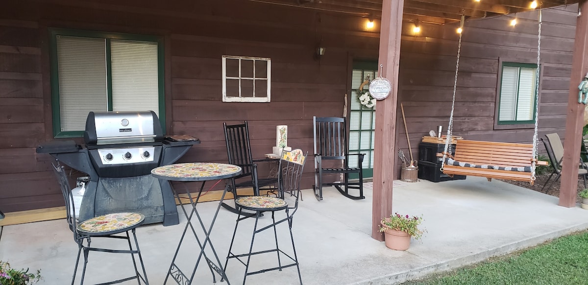 Comté de Union, GA Licence STR n° 016910 Serenity est notre spacieux appartement d'une chambre au niveau inférieur. 1200 pieds carrés. Niché dans un cul-de-sac, à 5 miles de la ville. En plein cœur de Blairsville et Hiawassee : tant d'endroits à explorer. À proximité des sentiers de randonnée, des cascades, des vignobles, du parc des expositions GA Mtn Fairgrounds, du parc Vogel St. 11 marches mènent à l'entrée privée de Serenity. Profitez de votre propre terrasse privée à côté d'un superbe foyer ! Un cadre tranquille qui est apaisant et rafraîchissant.
