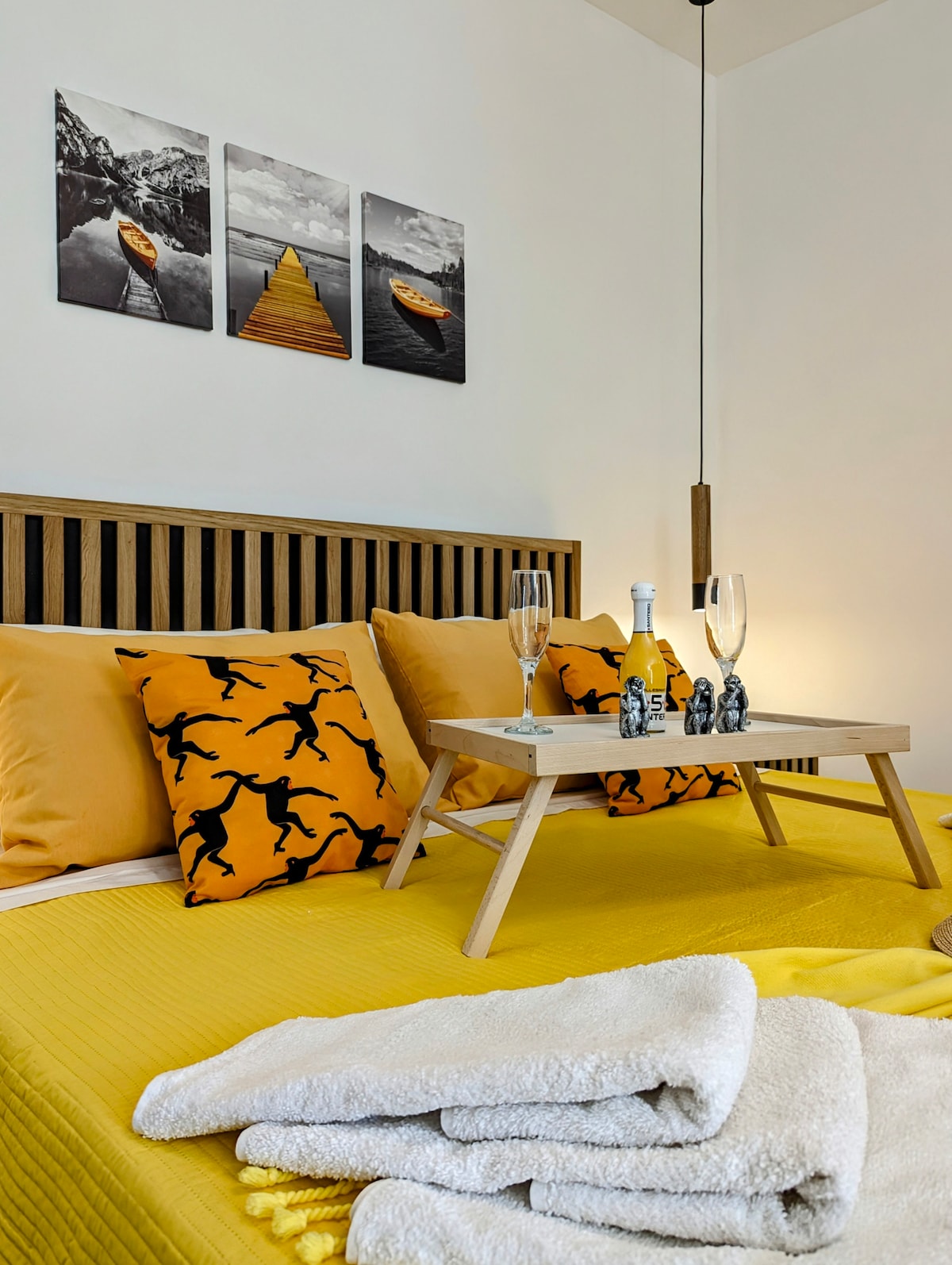 En plein centre, dans un élégant bâtiment historique du début du XXe siècle. Appartement lumineux, confortable et pourvu de tout le confort. Un grand séjour open-space avec canapé, coin studio, table à manger et cuisine ouverte avec péninsule. 2 chambres et 2 salles de bains. L'appartement à 2 balcons, avec une table basse bar et deux chaises. Ideal aussi pour un long séjour ou pour des déplacements professionnels. Dans le quartier local, les restaurants et les commerces. Toutes les principales attractions de la ville sont accessibles à pied.