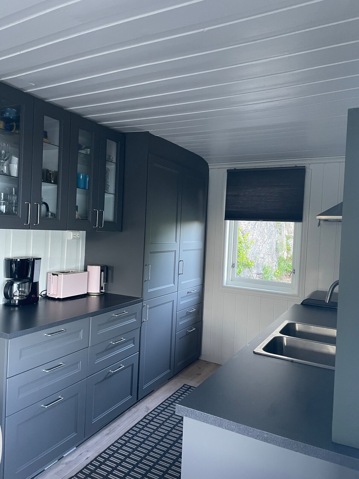 Profitez d'un séjour mémorable dans cet endroit unique. Ici, vous vivez à 40 mètres de la mer, et il y a des possibilités de pêche juste devant la maison. Vue sur la mer depuis le salon, la cuisine et les deux chambres. À distance de marche de belles zones gratuites avec une plage de sable fin. Grand et joli patio À courte distance de Gøyøya, connu des livres de Torbjørn Egner, et à environ 1,8 km du centre-ville. C'est un niveau élevé dans toutes les pièces et tout est entièrement rénové en 2023. Pompe à chaleur et chauffage chauffant. Linge de lit + faux vêtements inclus. Laver avec des frais supplémentaires