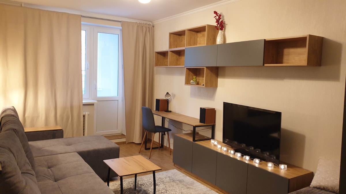 Un studio confortable avec une récente rénovation dans une nouvelle maison dans un quartier résidentiel de Chisinau. Design moderne et tous les appareils et meubles. Lit transformateur (grand lit king size) ou peut être séparé en deux lits séparés). La maison est un nouveau bâtiment avec ascenseur. Quartier calme. Transports en commun (arrêt à la maison). Divers commerces, restaurants, pharmacie, banque. Le centre de Chisinau se trouve à 20 minutes. Le transfert depuis l'aéroport est possible.