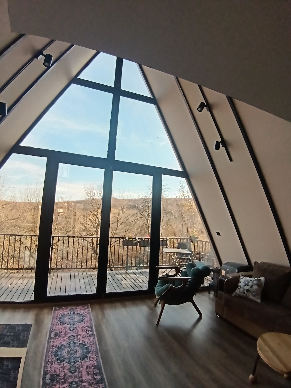 Notre villa écologique est à 30 km du centre de Tbilissi, située à 1 350 m au-dessus du niveau de la mer. Refuge parfait pour la paix, l'air frais et des vues imprenables, par temps clair, vous pouvez voir le mont Ararat ! La villa fait 108 m², avec 2 chambres, pour 4 personnes. Il y a un grand salon avec des fenêtres panoramiques, une cuisine entièrement équipée, des meubles confortables et une cheminée électrique. Extérieur : un bain à remous, un bain en bois finlandais, un sauna finlandais et un grill. Nous avons également ajouté un haut-parleur et il n'y a pas de limites de bruit.