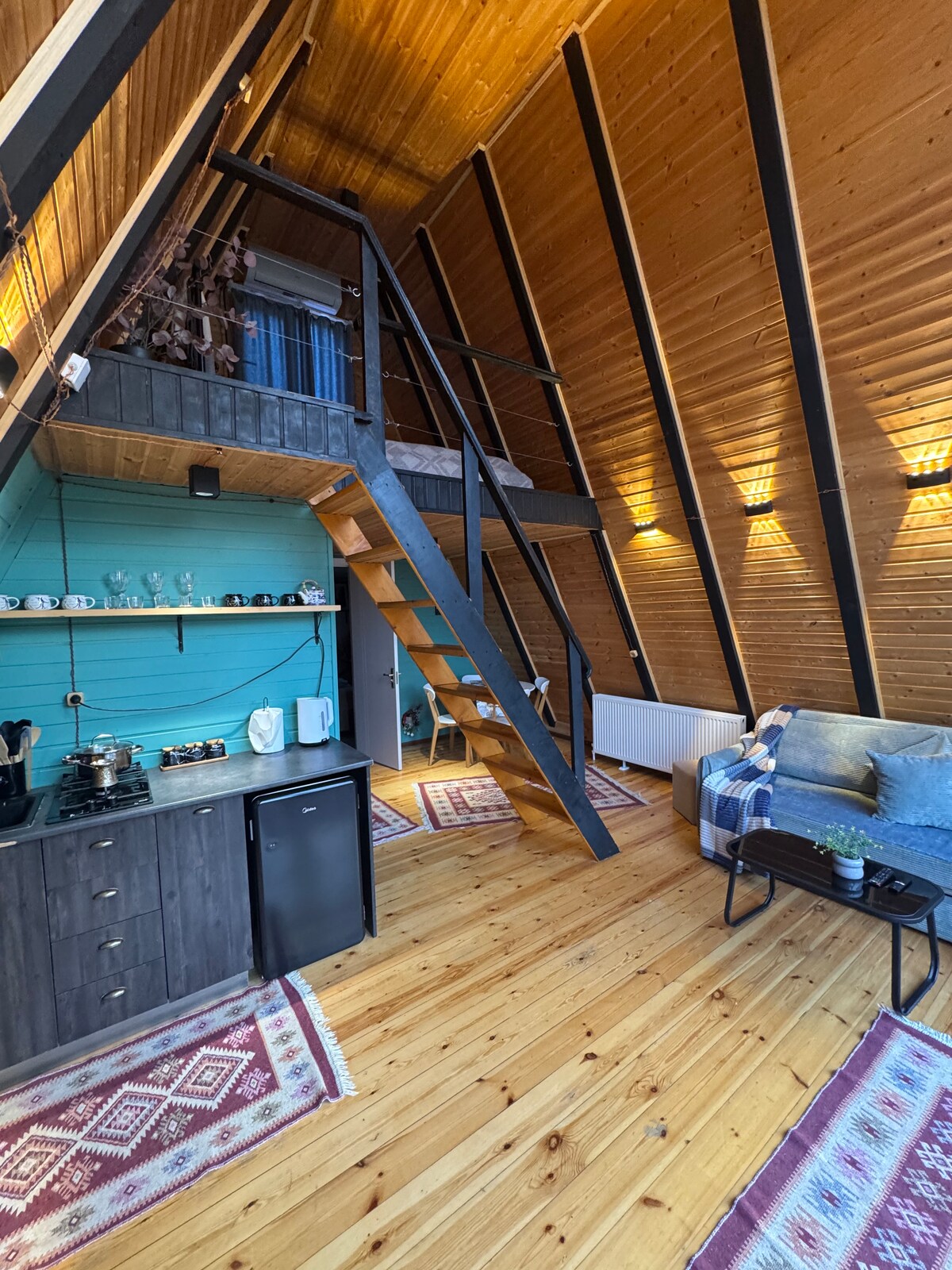 Cette cabane est unique, entièrement faite à la main par moi. Il est situé dans une petite forêt autour de vous, beaucoup d'arbres et tout est vert. Vous aurez beaucoup d'espace et une cour avec un belvédère extérieur. Cet endroit est le quartier le plus calme de la ville. La cabane est construite en matériaux naturels, bois, acier, brique, verre. Tous les meubles, lumières, accessoires d'intérieur sont faits à la main. Aucun son ne vous dérangera. Ma famille et moi vous accueillerons et vous aiderons pour tout ce que vous voulez. La cabane est située à 1,5 km du centre-ville.