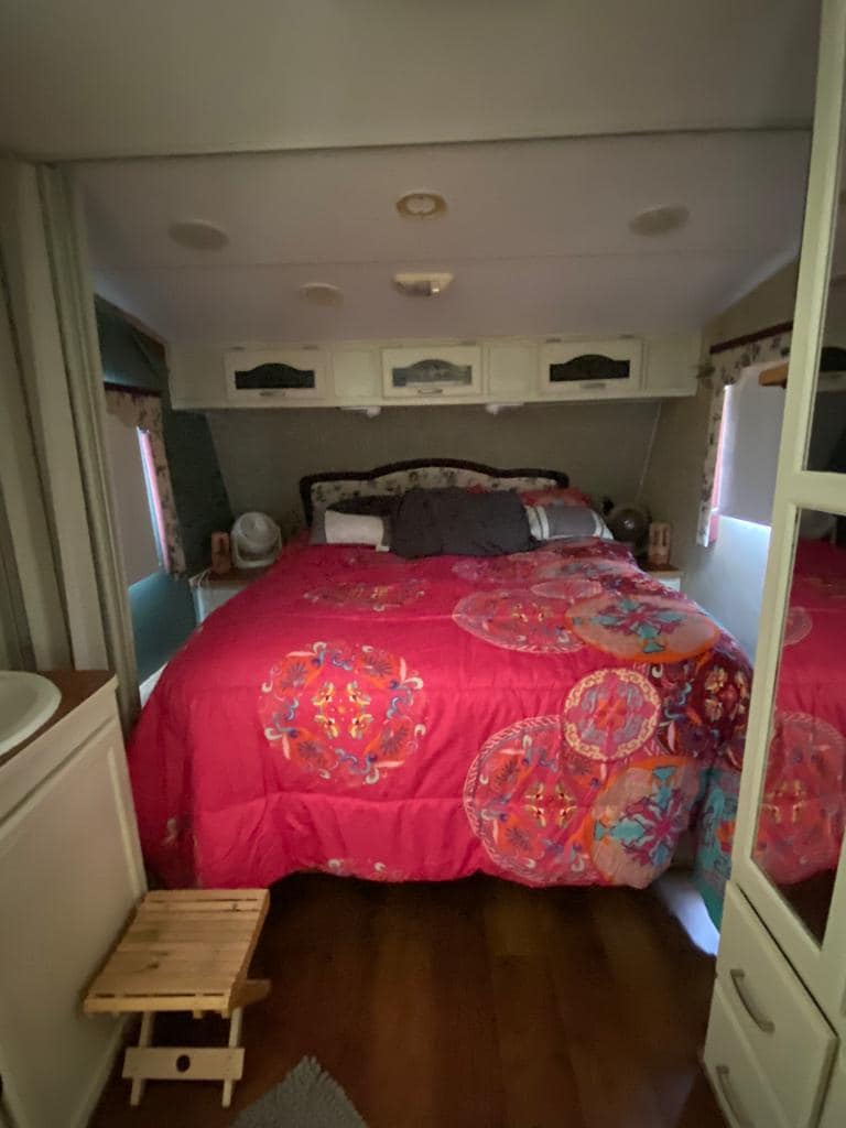 Sensation d'être à l'extérieur dans la ville. Notre Cruiser Fun Finder de 14 pieds est garé à l'arrière de notre terrain dans un quartier résidentiel calme du centre de Tucson. Il est petit, confortable et dispose de tout le nécessaire pour passer un séjour agréable : un lit Queen Size, une kitchenette entièrement équipée, un mini-réfrigérateur, de l'eau chaude courante, un chauffage, la climatisation et une salle d'eau privée avec WC et douche. Nous avons un coin repas avec table et chaises installés à l'extérieur. Pour les nuits plus fraîches, nous fournirons un chauffage et une couette en duvet pour vous garder au chaud.