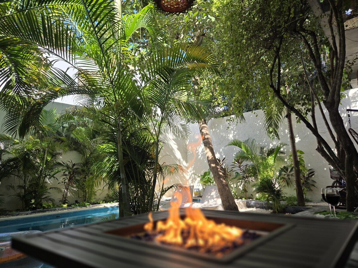 Welcome to your private escape in La Veleta 🌿 Perfectly located just 7 minutes from downtown and 15 minutes from the beach, this home offers the best of both worlds—easy access to town with the peaceful vibe of the jungle. Your comfort and safety are a top priority. The home is professionally cleaned and thoroughly sanitized before every stay. This charming bohemian retreat is nestled among lush Mayan jungle views. The entire property is exclusively yours, featuring a private pool & 4 bikes