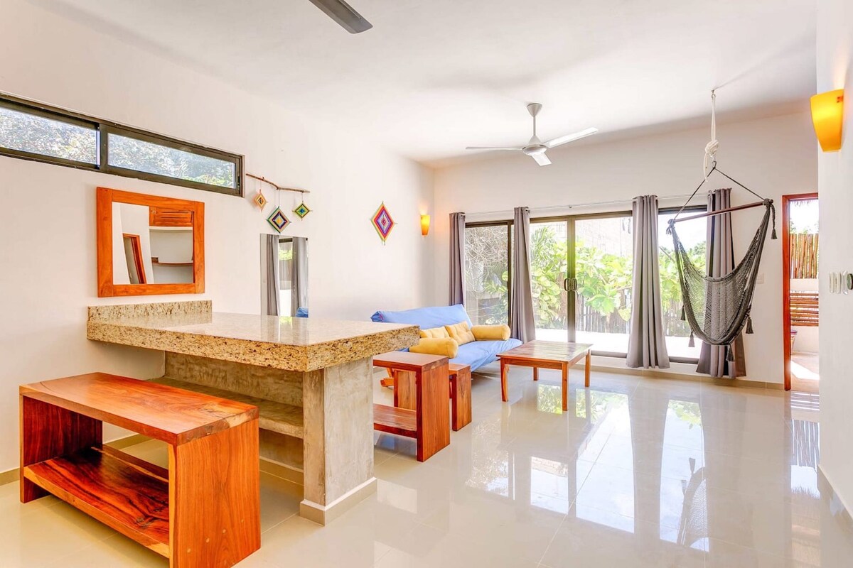 Séjournez au cœur de Tulum, promenez-vous dans les restaurants, les magasins et la vie nocturne depuis votre appartement 1BR avec terrasse privée. Le pied à terre idéal pour l'aventure et la détente. • Chambre confortable + salon • Terrasse privée pour se prélasser • Cuisine entièrement équipée ; • Climatisation et ventilateurs dans chaque pièce • Wi-Fi +300 Mbit/s Explorez le jour et célébrez la nuit. Réservez votre escapade à Tulum dès aujourd'hui !