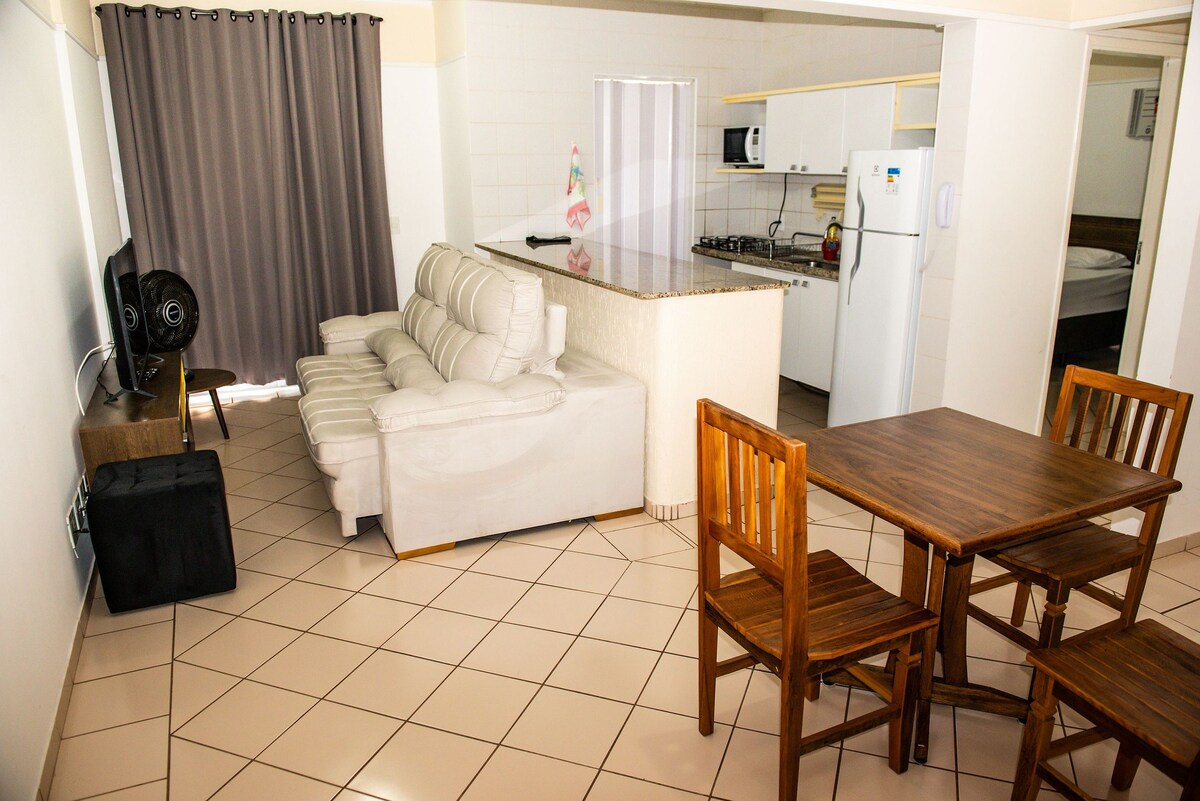 Acesso ao Parque Hot Beach com entrada separada. Taxa para uso do parque: R$ 99,00 por dia por apartamento na contratação de 2 dias ou mais. Para 1 dia, o valor é R$ 139,00 por dia por apartamento. O hotel oferece café da manhã opcional, contratado à parte: Adulto: R$ 48,60 por pessoa. Crianças de 7 a 12 anos: R$ 24,30. O apt possui toda a estrutura necessária para preparo de lanches e refeições, caso prefira. Apt para até 6 pessoas, com 1 quarto (1 cama de casal e 2 sofas cama)