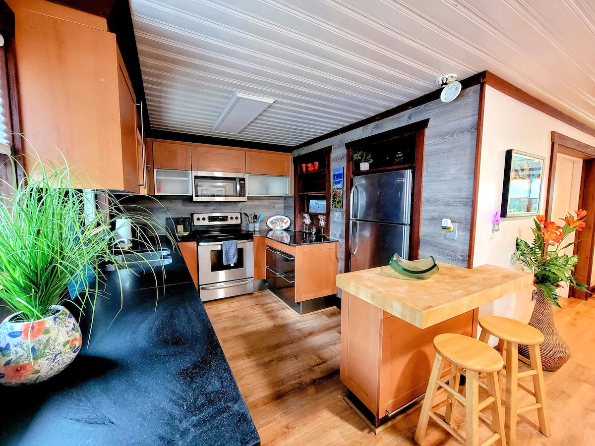 Détendez-vous dans cette maison de ranch privée de plus de 1500 pieds carrés ! Grande cuisine, 2 chambres, canapé-lit Queen Size, 1 grande salle de bain, GRAND salon, télévision 42" et terrasse. Super endroit pour rechercher la distanciation sociale. Profitez-en pour vos réunions de famille, vos célébrations spéciales, vos retraites professionnelles ou vos escapades entre amis. Laverie et distributeur automatique sur la propriété The Hideaway. Amarrez votre bateau ici ! Paddle boards, kayaks et cannes à pêche disponibles. Faites de cette maison votre événement annuel pour les affaires ou les loisirs.