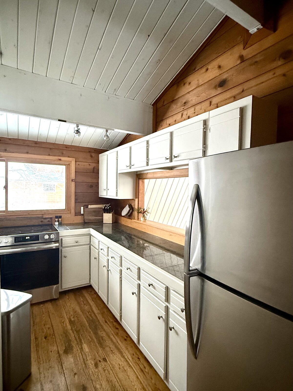 Ăcoutez le bruissement de la riviĂšre depuis le jacuzzi privĂ© sur fond de montagne, tandis que la baignoire Ă jets profonds de la salle de bain principale est tout aussi accueillante. La cuisine gastronomique dispose d'une cuisiniĂšre Viking, tandis que l'intĂ©rieur riche en bois comprend 2 cheminĂ©es Ă gaz. Nouveau matelas et lit King Size de luxe dans la chambre principale ! Cette propriĂ©tĂ© fournissait autrefois les « Chambres sur la riviĂšre » lorsqu'elle faisait partie du Minturn Inn sur Main Street. Maintenant, cet endroit convoitĂ© est tout pour vous. NichĂ© dans une rue calme, c'est l'endroit idĂ©al pour se dĂ©tendre aprĂšs une dure journĂ©e d'alpinisme. L'appartement se compose de la grande piĂšce et de la suite parentale. La chambre principale dispose d'un lit king size, d'une cheminĂ©e privĂ©e au chevet, d'une salle de bain privative avec baignoire Ă jets, d'une douche en verre et d'un bain Ă remous juste devant la porte de votre chambre. La chambre principale contient un lit Queen Size avec des rideaux d'intimitĂ© qui a un accĂšs direct Ă la salle de bain principale et Ă la douche. La piĂšce principale contient Ă©galement une cuisine gastronomique complĂšte, un bar pour le petit-dĂ©jeuner, une table ronde pouvant accueillir jusqu'Ă 6 personnes, une tĂ©lĂ©vision de 50 pouces avec cĂąble et un canapĂ©-lit gigogne. L'appartement s'ouvre directement sur la cour donnant sur la riviĂšre. L'appartement entier est privĂ©, y compris l'entrĂ©e privĂ©e. La cour est partagĂ©e avec nous, mais nous l'utilisons rarement car nos enfants prĂ©fĂšrent le cĂŽtĂ© avant/rue de la maison oĂč ils peuvent faire du vĂ©lo ! Ma femme ou moi serons souvent dehors Ă pĂȘcher Ă la mouche dans notre riviĂšre de jardin les soirs d'Ă©tĂ©. Nous sommes heureux de partager l'espace et de vous dire ce qui mord ! Malheureusement, nous ne sommes pas accessibles en fauteuil roulant. Ou mĂȘme accessible en talons hauts. Des bottes sont recommandĂ©es pour parcourir le chemin pelletĂ© qui vous emmĂšne Ă l'entrĂ©e au bord de la riviĂšre. Il y a une main courante en corde pour vous guider, mais vous devez avoir le pied sĂ»r. Notre famille de quatre personnes vit Ă l'Ă©tage complĂštement sĂ©parĂ©. Je suis normalement disponible pour tout ce qui se prĂ©sente, mais je ne veux pas entraver vos vacances relaxantes au bord de la riviĂšre. Minturn est une petite ville de ski loin de l'agitation de Vail et Beaver Creek. Promenez-vous jusqu'Ă plusieurs restaurants, un vignoble, des boutiques de cadeaux pittoresques, un magasin de disques et peut-ĂȘtre le meilleur magasin de mouches dans les montagnes. Ski, rafting et VTT Ă quelques minutes seulement. Il y a un parking gratuit dans l'allĂ©e. Il y a un arrĂȘt de bus Ă 3 minutes Ă pied qui vous mĂšnera Ă Vail pour 4 $. Uber et les taxis sont Ă©galement disponibles. Notre maison et notre propriĂ©tĂ© sont non-fumeurs. Pas d'animaux de compagnie s'il vous plaĂźt. Lit pour bĂ©bĂ© avec drap-housse dans le logement. Planche Ă repasser/fer Ă repasser, ventilateur, couvertures supplĂ©mentaires, panier/sac Ă dos de pique-nique, sĂšche-cheveux dans chaque salle de bain.