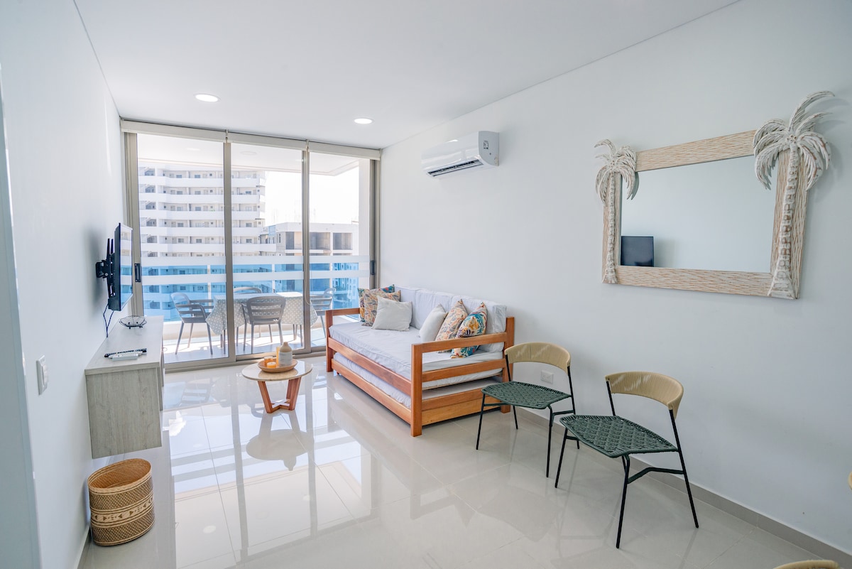 Modern Comfort by the Coast 🌴 Welcome to this apartasuite just 10 minutes from Simón Bolívar International Airport .The place features a bright bedroom with a queen bed and an additional pull-out bed—perfect for families or friends. The open-concept living space includes a sofa bed and a fully equipped kitchen with a breakfast bar. Step outside to enjoy exclusive access to a private beach, pools, hot tubs, a sauna, and steam room—everything you need for a perfect Caribbean getaway.