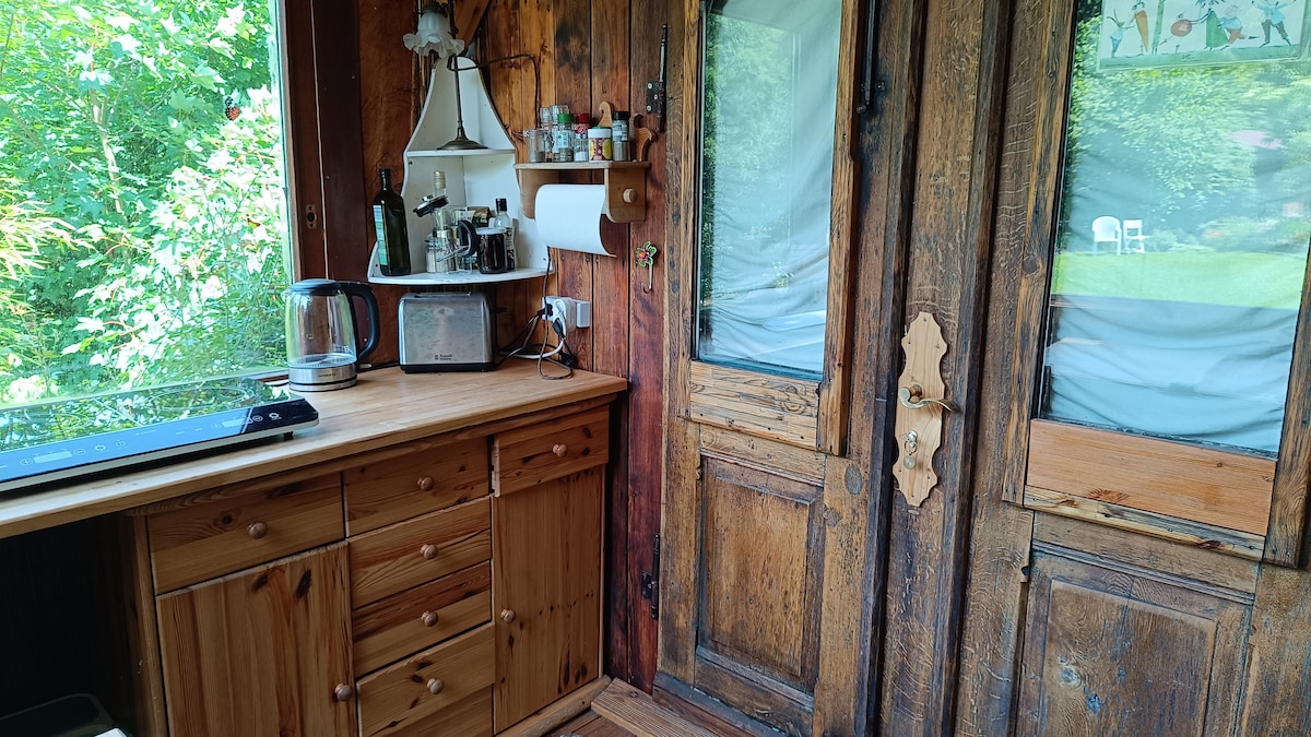 Charmante roulotte de cirque pour 2 personnes, aménagée de manière originale dans notre magnifique jardin, de Rosenstock à la nature sauvage, vous attend. Avec ses 15 m² de surface habitable avec cheminée et 9 m² de cuisine extérieure couverte et confortable, vous pourrez vivre votre aventure au plus près de la nature. Tout autour, des forêts, des ruisseaux et le silence. Dans la maison principale se trouve une salle de bain. Une belle salle avec piano, bibliothèque et 12 personnes sympas pour de bonnes conversations. Wifi, parking. Également 2 chambres d'hôtes et 2 appartements de vacances.