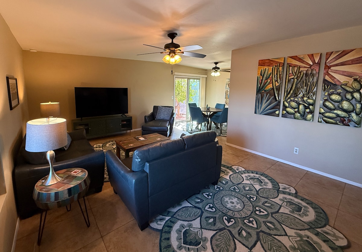 Welcome to your peaceful private studio apartment, where tranquility and cleanliness are the order of the day. This inviting space includes a generously proportioned bathroom for your comfort and a well-equipped kitchen with a laptop-friendly workspace. Conveniently situated just an 18-minute drive from Tucson International Airport, our location is within easy reach of an array of restaurants and grocery stores. Come experience the perfect blend of serenity during your stay!