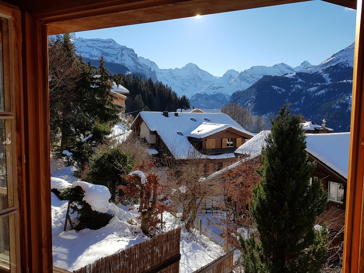 Das Chalet Hollandia befindet sich oberhalb dem Dorf Grindelwald auf 1180 m.ü.M. Es ist sehr ruhig und bietet eine atemberaubende Aussicht auf die Bergwelt von Grindelwald. In der Ferienwohnung finden Sie alles was Sie brauchen, um Ihren Aufenthalt im Gletscherdorf Grindelwald zu genießen. Das Chalet ist gleich bei einer Bushaltestelle, bitte Informieren Sie sich beim Gastgeber über die Fahrpläne. Zu Fuß ist das gemütliche Chalet Hollandia in ca. 30 min vom Bahnhof Grindelwald erreichbar.