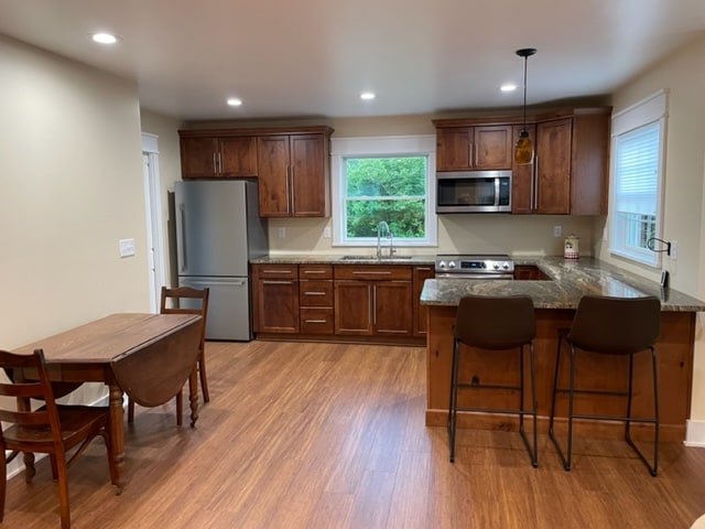 Espace spacieux privé pour votre plaisir avec une entrée indépendante. Nouvelle cuisine entièrement meublée avec goût, salon, chambre, dressing avec un lit Queen Posturepedic très confortable. Le séjour dispose d'une télévision connectée et d'une connexion Internet. Un grand comptoir pour étaler vos rendez-vous d'affaires, jouer à des jeux ou profiter de votre dîner. Un patio extérieur confortable et relaxant. Beaucoup de stationnement en dehors de la rue. Une maison idéale loin de chez vous pour un couple ou un professionnel en déplacement.