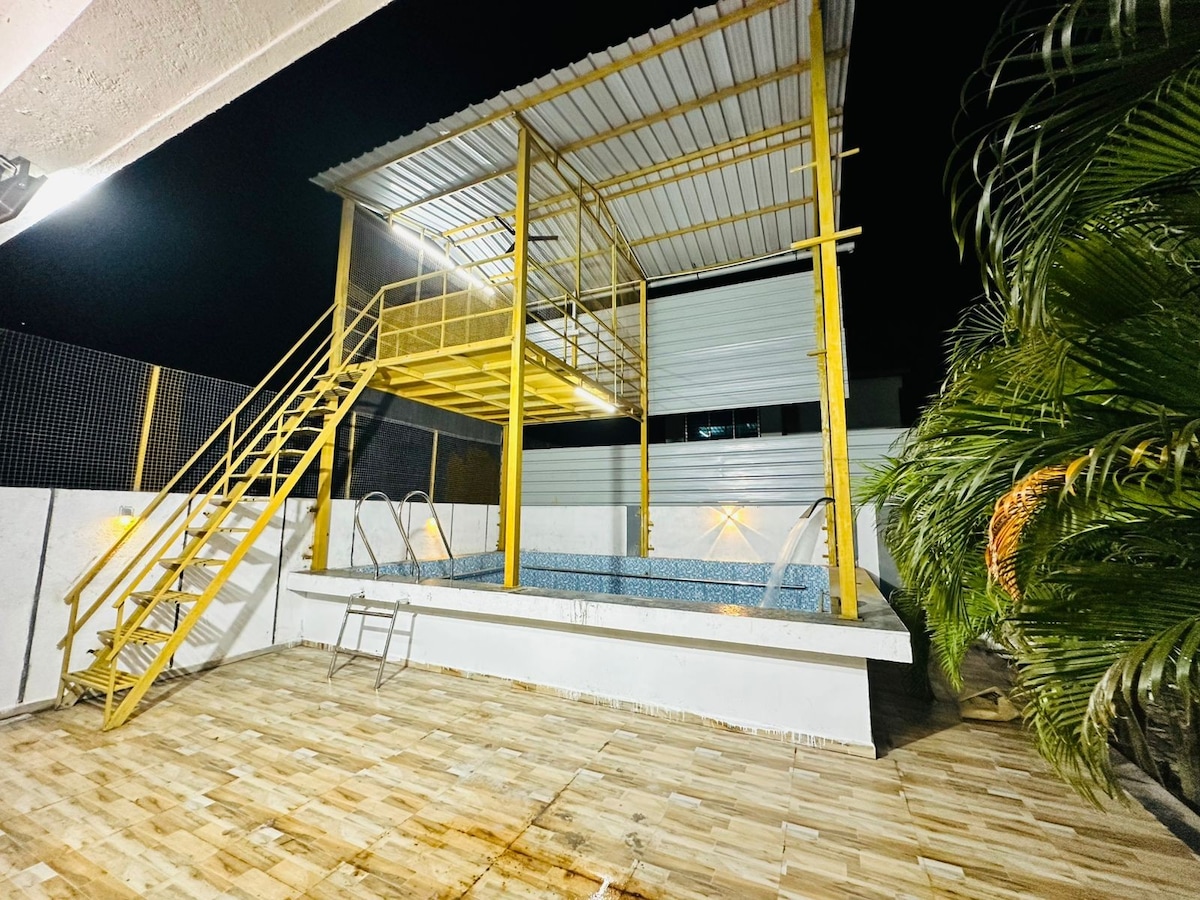 Experience a perfect private getaway at our couple-friendly luxury farmhouse near Surat. Enjoy a private swimming pool, lush garden, cozy 2 master bedrooms , AC comfort, fully equipped kitchen, geyser, Fridge, L shape sofa, Pooltop, Jhoola, Chill under gazebo and private parking. Ideal for couples, families, and friends to relax, celebrate, Birthday Celebration unwind in nature. Peaceful, clean, and exclusive — your perfect weekend escape awaits.