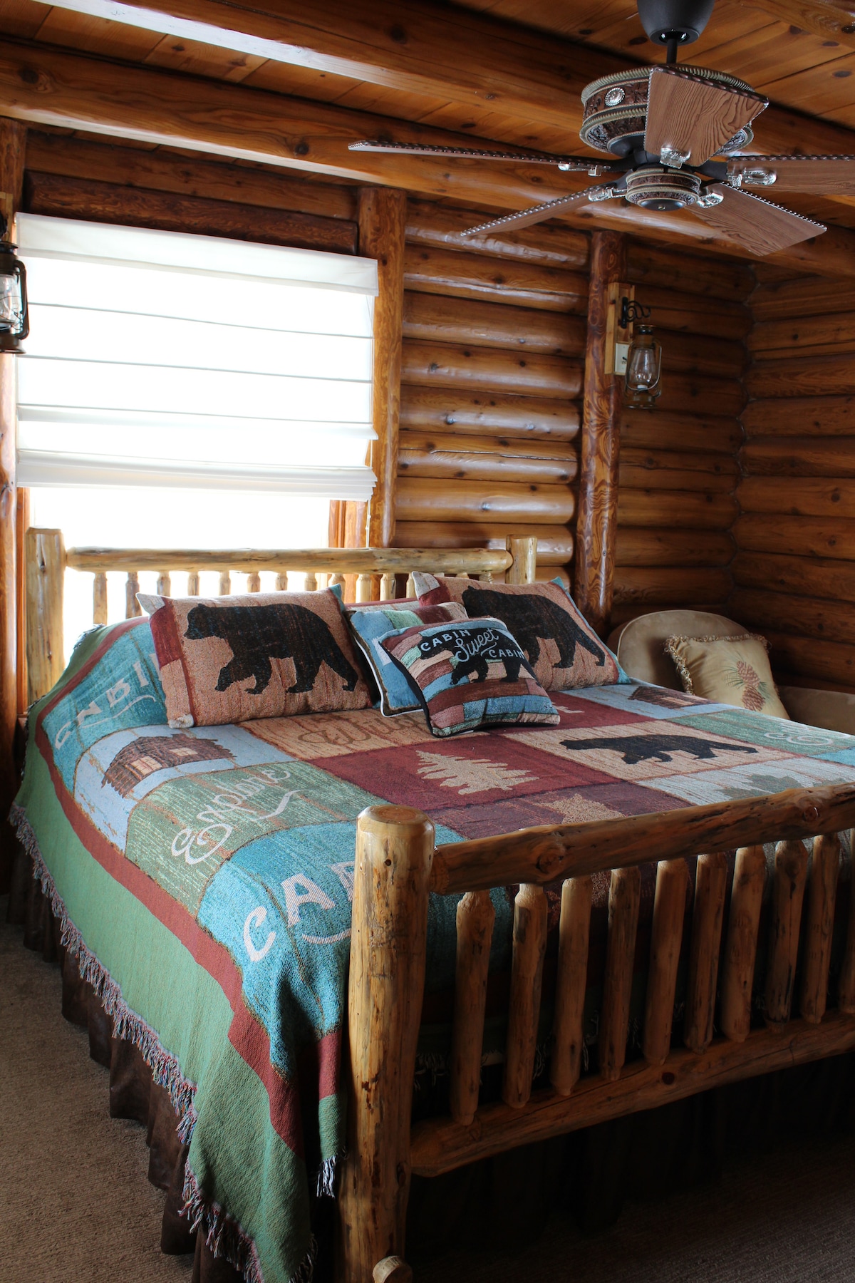 Cette véritable cabane en rondins est idéalement située dans la campagne à 12 miles de Williams et à 45 miles du Grand Canyon. Depuis le porche, vous pouvez voir Bill Williams Mountain de l'autre côté de la vallée. Situé à quelques mètres de la forêt nationale de Kaibab, il y a de nombreux visiteurs à fourrure, notamment des élans, des cerfs, des lynx, des coyotes et plus encore. La nuit, les étoiles brillent dans le ciel nocturne. Lorsqu'il y a pleine lune, vous pouvez presque compter les cratères à sa surface. Le chalet offre tout ce dont vous avez besoin pour une belle visite.
