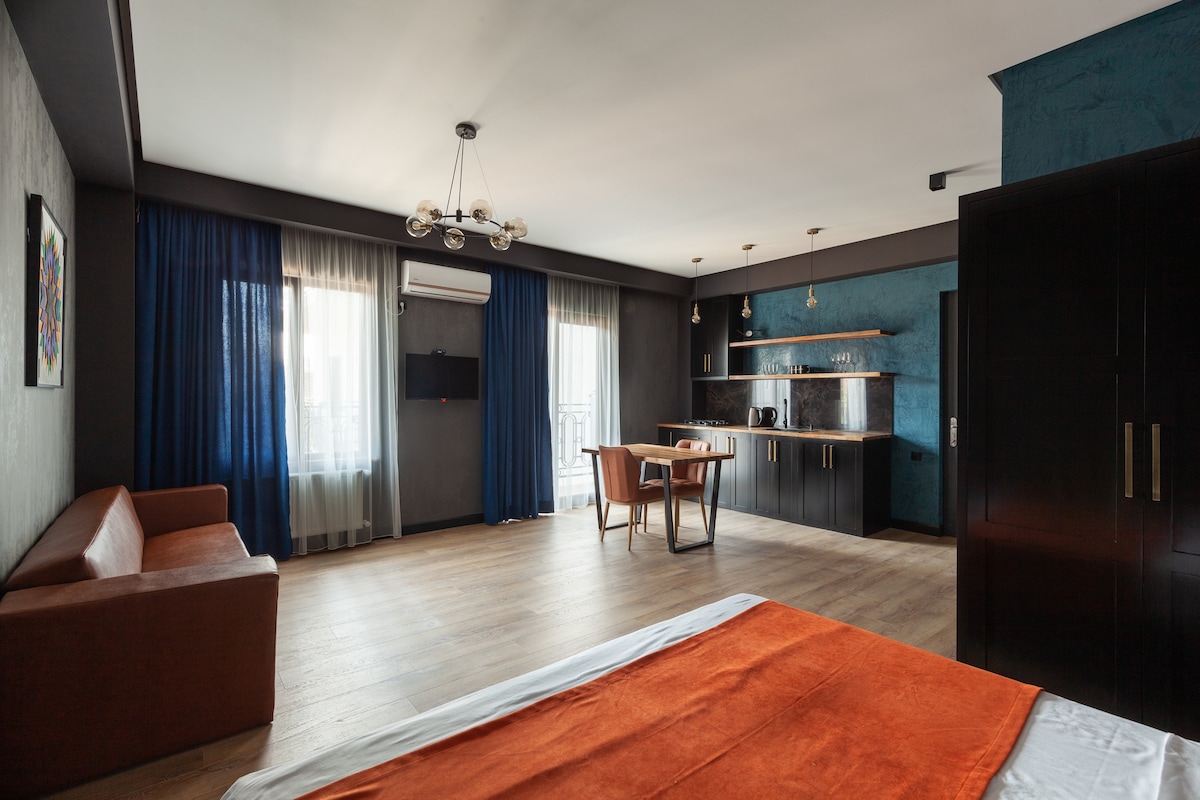 Cet espace unique est situé au cœur du vieux Kutaisi, à quelques pas du centre-ville. Son design moderne et sa riche liste d'équipements répondront à tous vos besoins : 2 lits queen-size confortables, des serviettes et des draps frais, un canapé confortable avec des oreillers, une cuisine entièrement équipée pour l'auto-restauration, une télévision intelligente, une connexion Wi-Fi haut débit, la climatisation, une machine à laver et du café et du thé gratuits. Alors détendez-vous, relaxez-vous et faites comme chez vous🏠 🚭 Non fumeur à l'intérieur 🐾 Les animaux de compagnie ne sont pas acceptés.