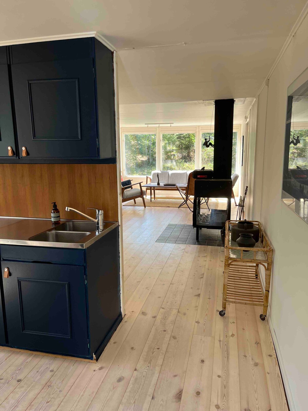 Bienvenue dans notre belle maison à la campagne, sans voisins d'à côté, à l'exception de la forêt. Une courte promenade vous emmène à un lac calme et à une belle entrée de mer, pour se baigner ou simplement se détendre au bord de l'eau. La maison dispose de tout le confort moderne, d'un plan d'étage ouvert et de grandes fenêtres qui font entrer l'extérieur. Il y a également un sauna privé. Particulièrement adapté aux familles : il y a des jouets, un trampoline, des balançoires, une chaise haute et un lit bébé pour rendre votre séjour facile et amusant. Profitez de la paix et de la tranquillité !