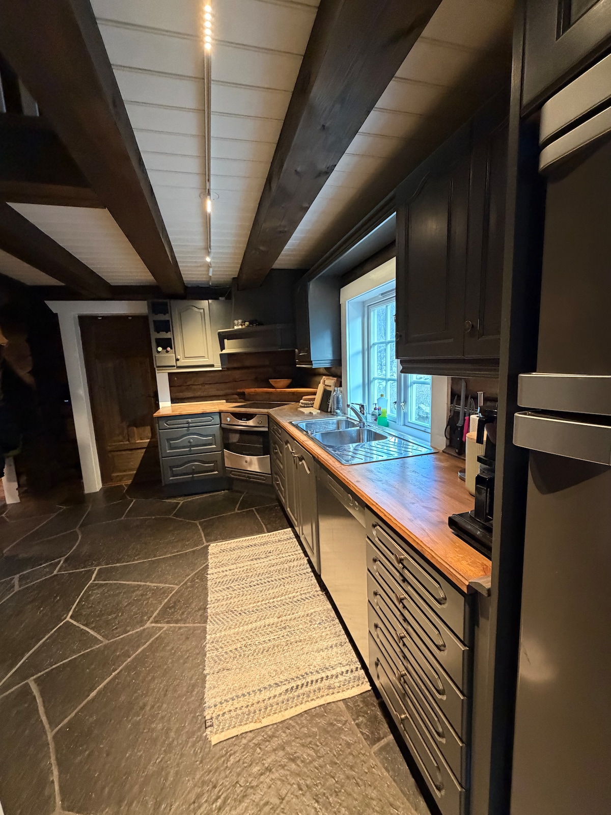 Grande cabane nouvellement construite avec un emplacement idéal au sommet de la zone alpine, à 100 mètres des remontées mécaniques. Ski de fond à proximité immédiate. En été, vous avez le soleil du matin sur la terrasse du petit-déjeuner, avant que le soleil de l'après-midi ne s'étende jusqu'à une grande terrasse combinée en ardoise et en bois, avec une vue fantastique sur Jotunheimen ! Excellente randonnée toute l'année année. Deux chambres et deux salles de bain du 1er étage. Hems avec deux chambres et solution ouverte jusqu'au salon. Grande cuisine avec accès direct au domaine skiable/cabine de métro. La cabane dispose d'un rechargeur de voiture électrique.