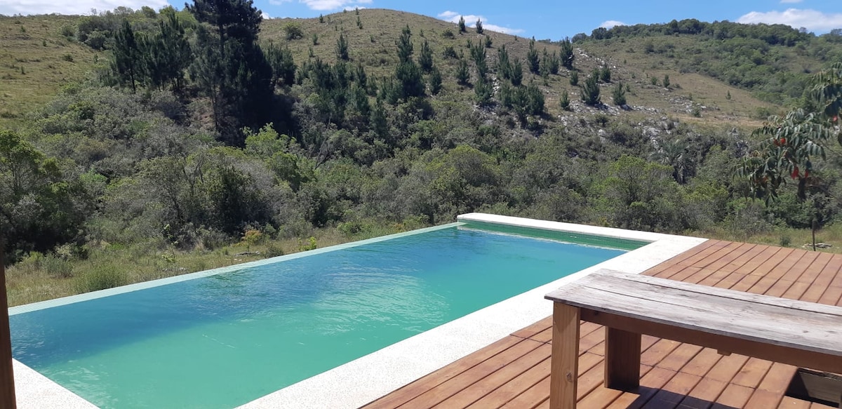 Excelente escape de la rutina diaria, vista inmejorable, el sol se pone detrás de las sierras. Biodiversidad. Tranquilidad. Privacidad. Cuenta con fogón (a leña/carbón no incluidos) y barbecue a gas (incluido). ¡PISCINA climatizada de DICIEMBRE a MARZO INCLUSIVE! *CADA AÑO POST SEMANA DE TURISMO A NOVIEMBRE LA CLIMATIZACIÓN DE LA PISCINA NO SE PRENDE* WIFI ilimitado de Starlink / Netflix (con tu usuario) y Youtube Premium disponible. Somos Casa Armonía Uruguay🇺🇾 Los esperamos 🫶🏼