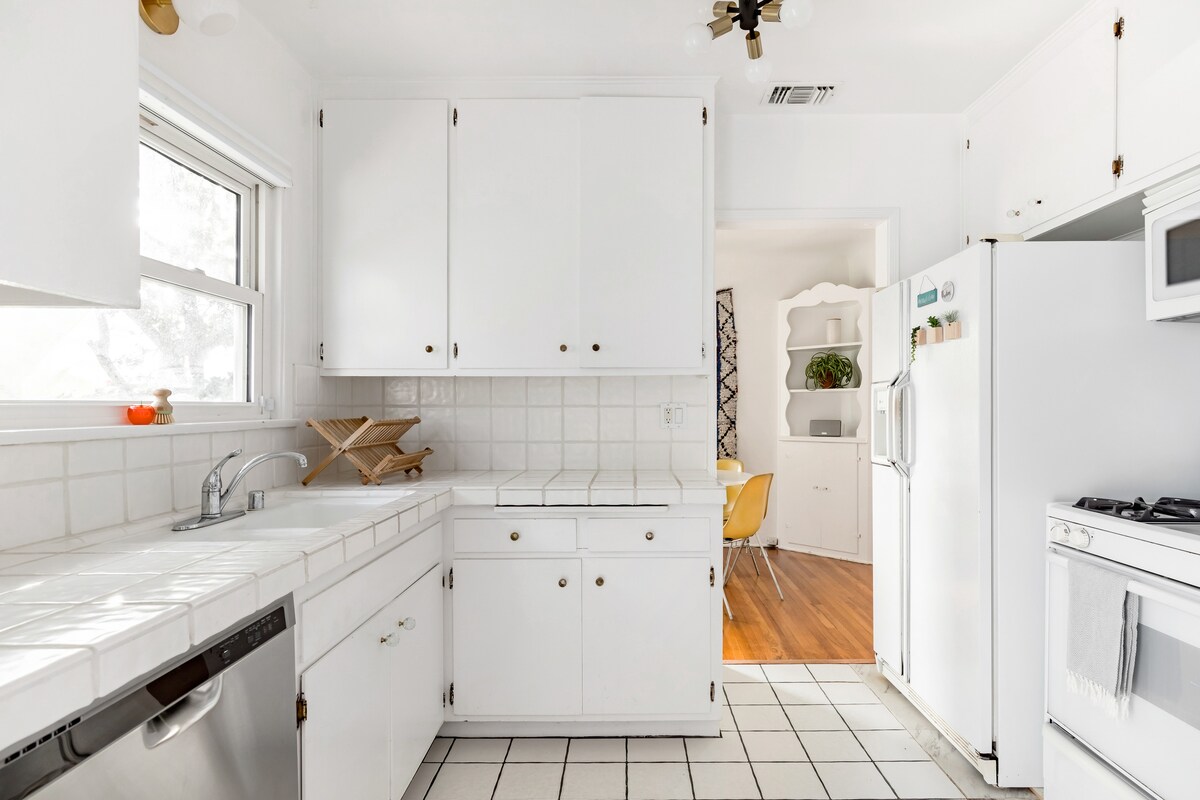Bienvenue à la Shell House Venice ! Cette maison de style Craftsman de 1911, lumineuse et spacieuse, avec 2,5 chambres et 1 salle de bain, offre les équipements d'un hôtel-boutique avec des touches chaleureuses qui vous font vous sentir comme chez vous. Parfait pour un week-end romantique, une escapade en famille ou une retraite d'écrivain. Le porche avant donne sur une grande cour herbeuse avec une clôture de piquet, et est parfait pour un café du matin ou une détente en début de soirée. La cour arrière privée et fermée offre un cadre tranquille pour dîner en plein air et profiter du feu.
