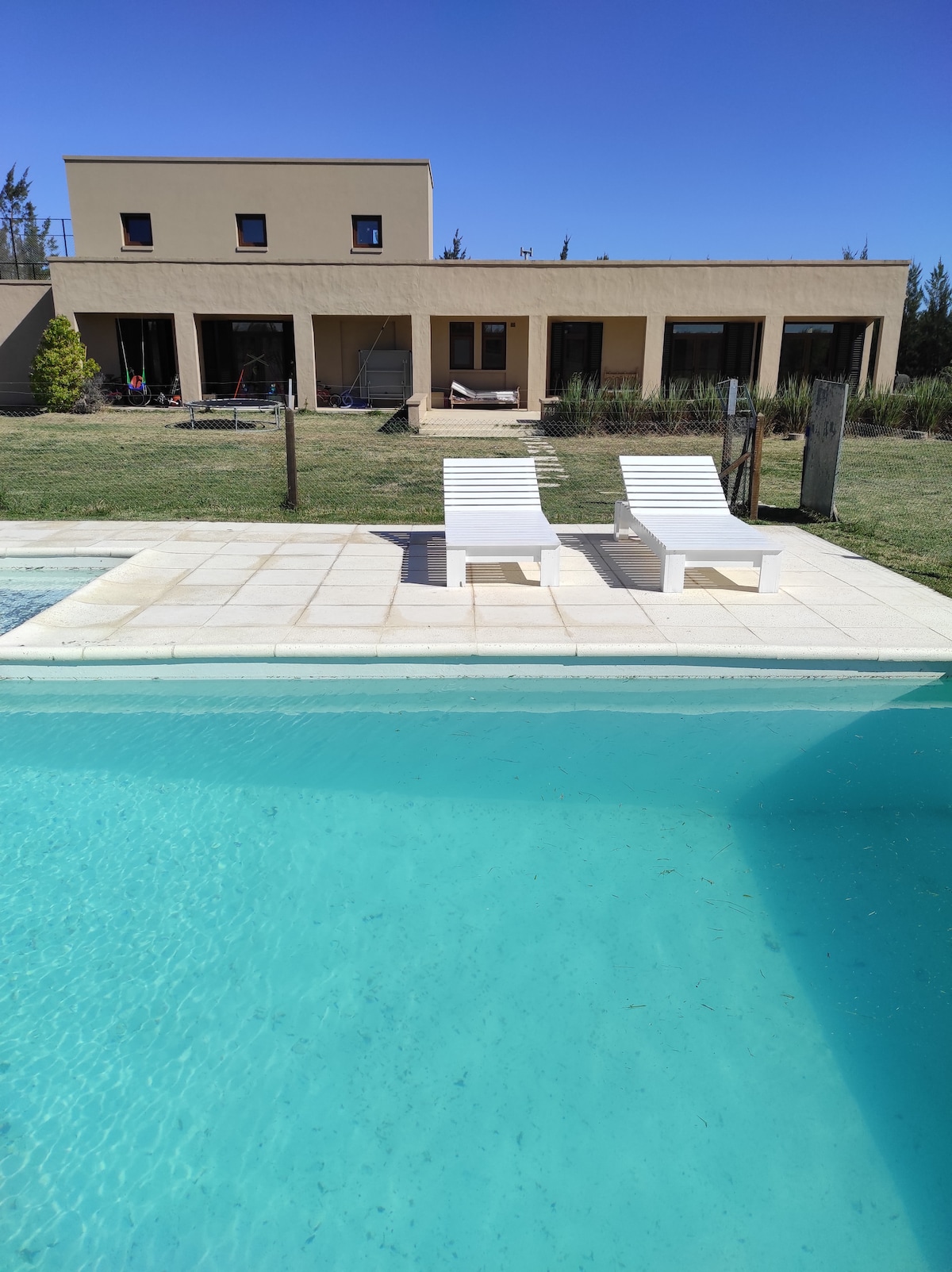 Zone rurale de Magdalena, à 62 km de La Plata. Maison équipée : salon-salle à manger avec SmarTV, cuisine ( frigo-freezer, micro-ondes ). Wifi. 4 chambres doubles avec salle de bains privative. Linge de lit et de bain. Réservoir-pilette avec deck. Terrain de volley. Nous produisons notre énergie avec des panneaux solaires