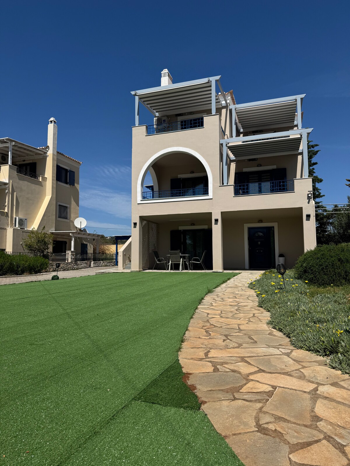 Un appartement décoré de façon minimaliste à proximité de la mer avec une vue magnifique. Le grand jardin rempli d'oliviers et de nombreuses plantes méditerranéennes complète la vue depuis les balcons. Des activités comme le jogging, la pêche, le canoë, le basket-ball et les sports nautiques peuvent facilement avoir lieu. La proximité de la maison avec toutes les stations balnéaires célèbres et luxueuses et d'autres îles célèbres (comme Spetses) rend votre expérience à Porto Heli inoubliable.