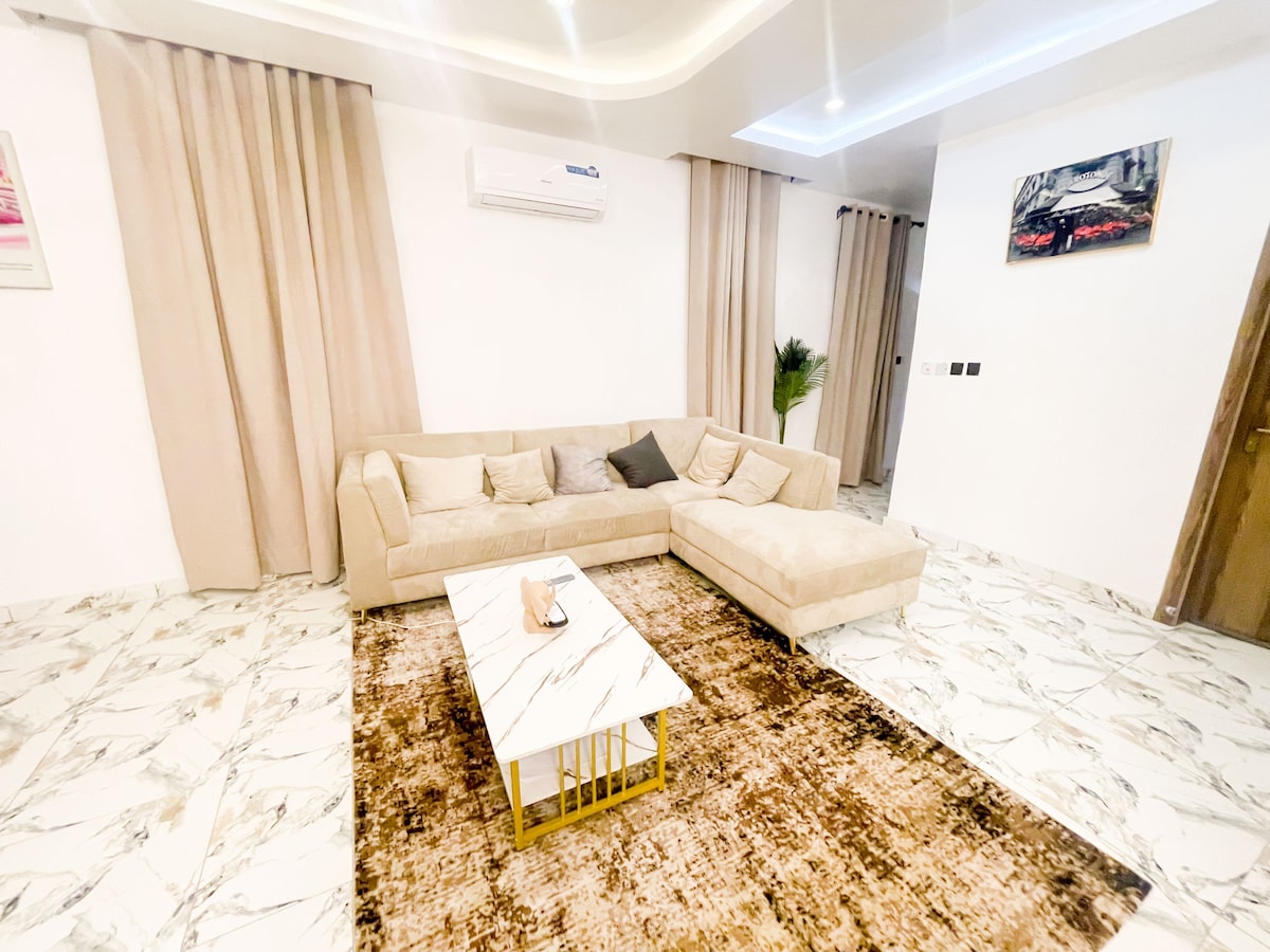 Bienvenue dans votre retraite moderne d'une chambre au cœur de Lekki. Profitez d'un lit king-size, d'une cuisine entièrement équipée, d'une alimentation électrique 24h/24 et 7j/7, d'un onduleur de secours, d'une connexion Wi-Fi rapide, de Netflix, de DSTV et d'un accès à la piscine. Conçue avec soin pour le confort et le style, elle est parfaite pour les vacances ou le travail. Situé à proximité du supermarché Blenco et de Mega Chicken et non loin de la Nike Art Gallery, de l'Elegushi Royal Beach, du Hard Rock Cafe, vous aurez le meilleur de Lekki à votre porte. Sûr, serein et accueillant : votre maison loin de chez vous vous attend.