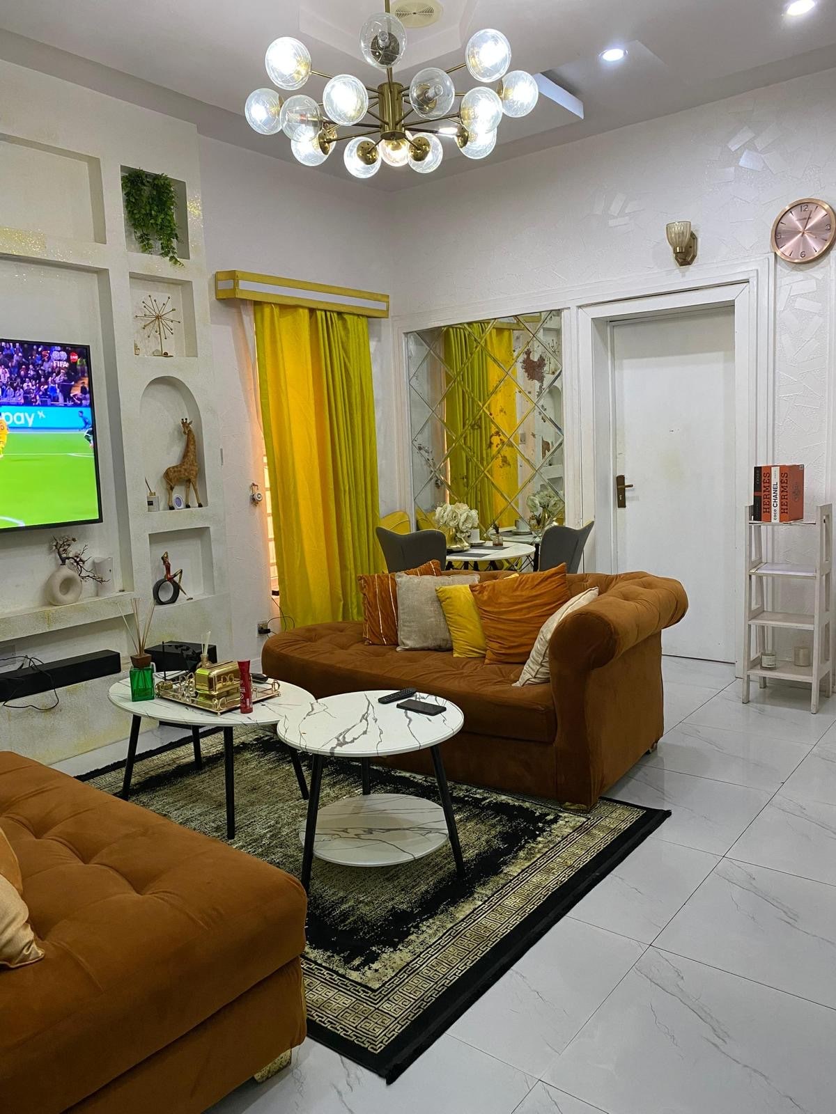 Un luxueux appartement de service de 2 chambres avec un mobilier contemporain dans un quartier central sûr situé à côté de la rue la plus populaire de Lekki phase 1 à côté du plus grand supermarché indigène Ebeano, un centre commercial à un arrêt - Centre commercial et clubs d'Aaron, restaurants, bar et salons. L'appartement est tout neuf et dispose d'un ascenseur, d'une alimentation 24h/24, de 2 places de parking, d'une connexion Wi-Fi gratuite, de toutes les chambres attenantes, de la climatisation, d'une cuisine équipée, d'un lave-linge, d'un Netflix dans toutes les chambres, d'une télévision et d'une barre de son de 65 pouces et d'une DSTV Premium.