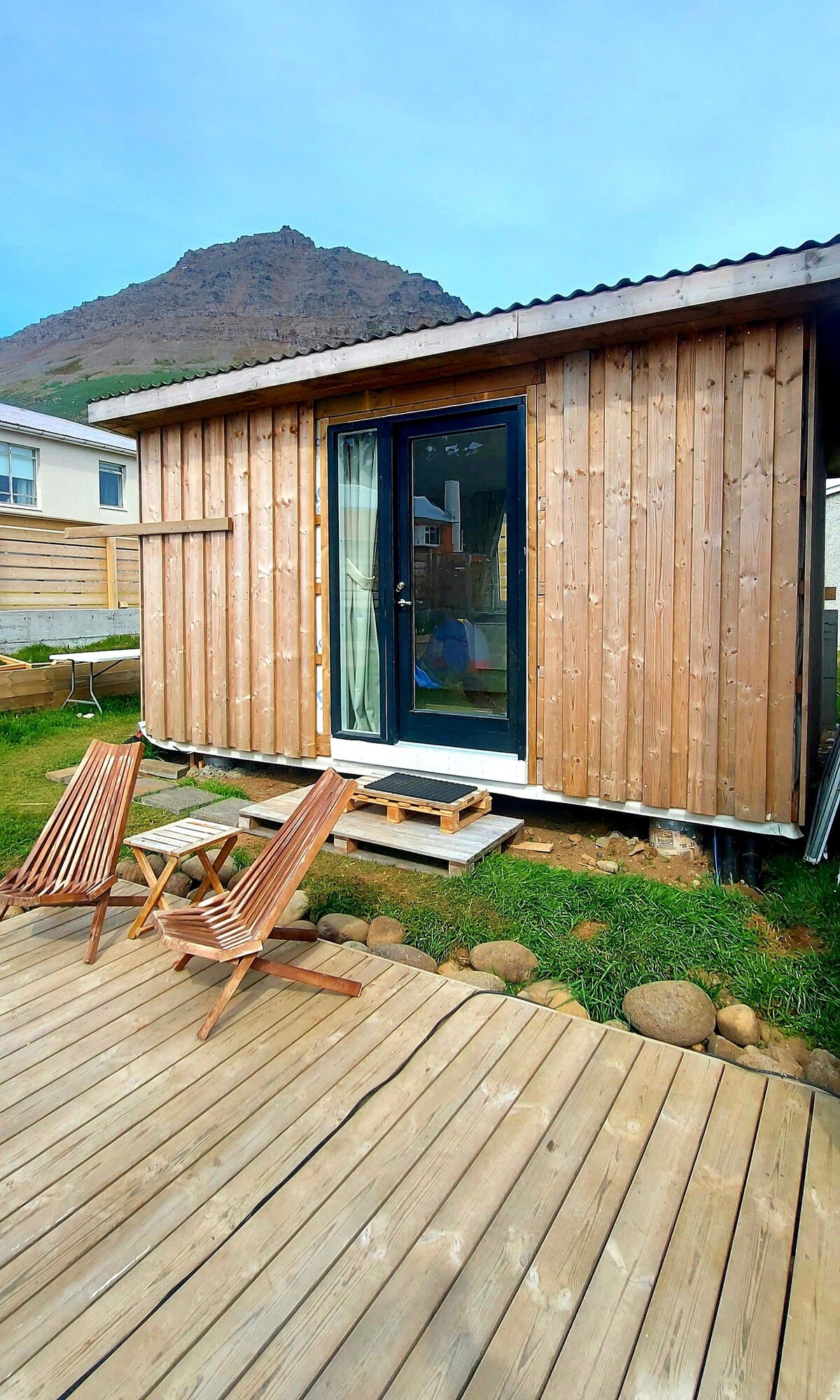 La maison est petite, accueillante et cosy avec terrasse et vue imprenable. Elle niche dans un jardin spacieux près de la mer et le port du petit village de pêcheurs de Bolungarvík qui est entouré de montagnes sur trois côtés. La maison est sur 2 étages, au rez-de-chaussée il y a une cuisine ouverte, un salon avec un canapé et une salle de bains avec douche. Le deuxième étage est un loft avec 1 lit double, un lit de voyage est disponible sur demande.