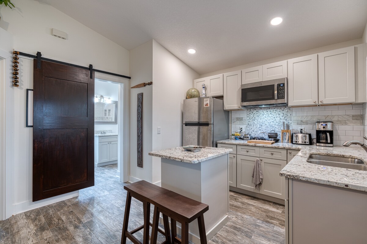Beach & Ocean lovers retreat- Steps to quiet beach, close to historic area, short scenic walk to grocery/waterfront dining/roof top cocktails Gem w/lots of outdoor living. Bright, spacious cottage-style apartment w/kitchenette (No oven/stove). Fenced/gated large property. Easy 1 min walk to quiet beach! Convenient walkable beach neighborhood. Short Uber ride to historic district. Perfect for couple (baby up to 2yrs welcome) solo traveler, Flagler College parents.