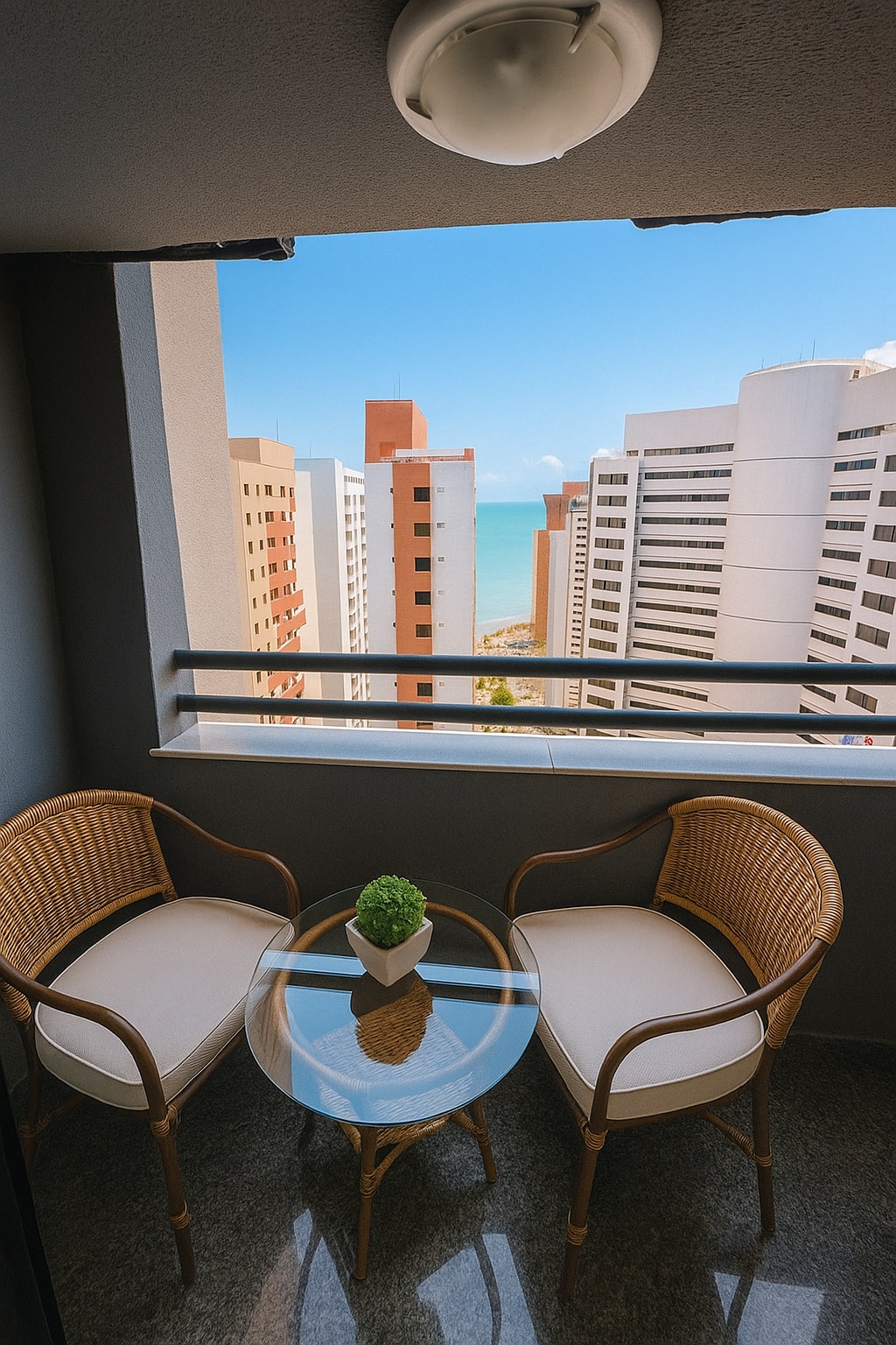 Aconchegante Flat com vista para o mar localizado na Avenida mais turística da capital Cearense. A Beira Mar possui uma grande orla repleta restaurantes e barzinhos, também a feirinha de artesanato com diversos itens culturais e é perfeita para caminhar e andar de bicicleta, tomar uma água de coco e curtir a brisa de Fortaleza.
