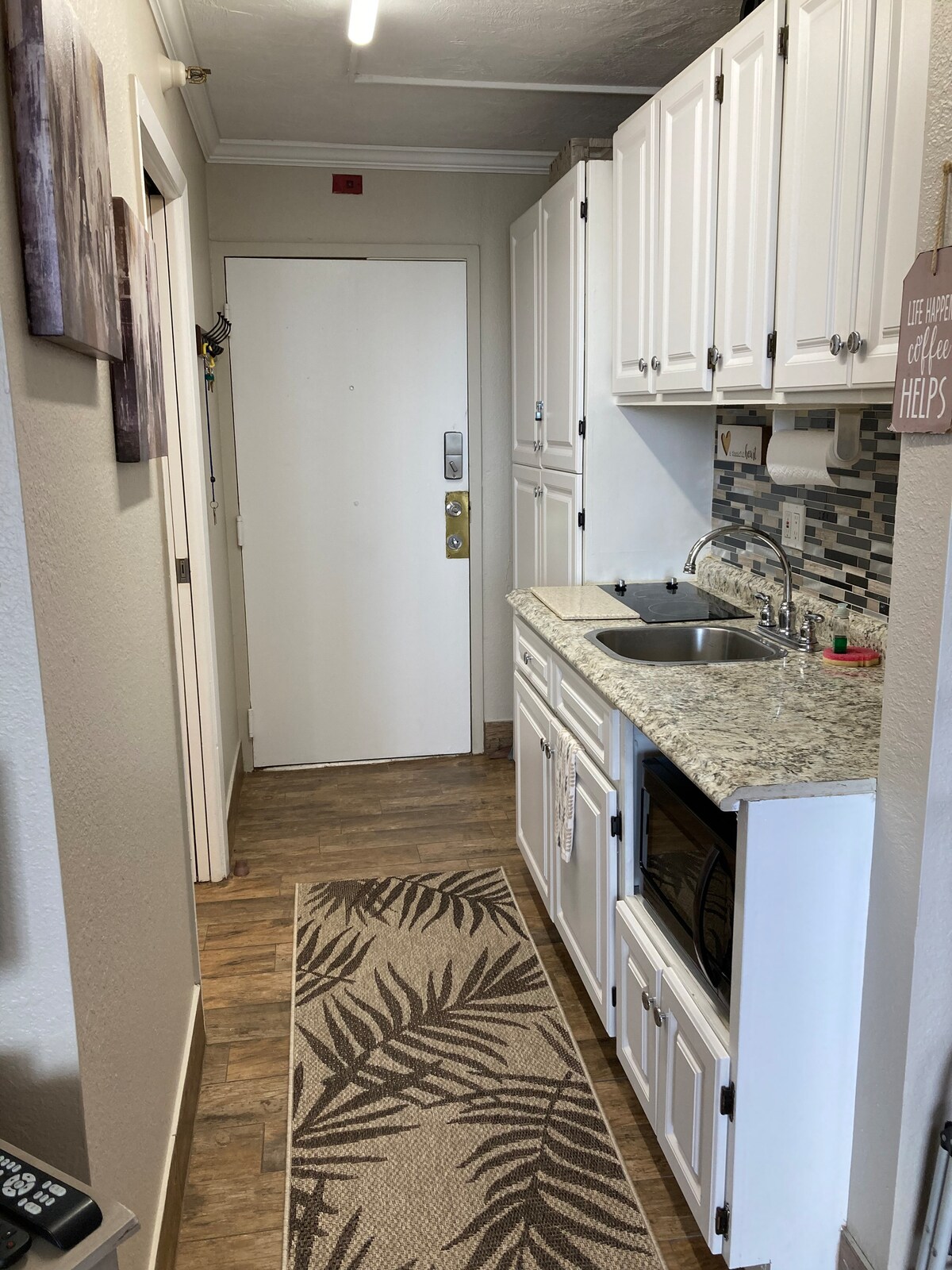 OCEANVIEW STUDIO in quiet Daytona Beach Shores. Beautifully redecorated with fresh paint job, new fridge and 2 person dinette. Queen size bed and love seat(not a pullout) The kitchenette has cooktop, microwave, toaster oven and KEURIG coffee maker. All the essentials for a stay that feels like home. Including beach chairs and beach towels! Cozy and relaxing. Perfect for singles or a couple(only sleeps 2). Comfortable and clean 4th floor SE facing balcony with spectacular sunrises!