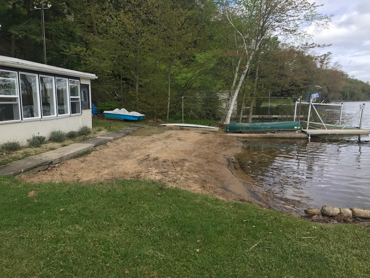 Notre chalet est à quelques pas du lac, de la plage et du quai. À quelques minutes seulement du parc d'État de Duck Lake et des plages du lac Michigan. Parfait pour une escapade pour se détendre et profiter du cadre paisible. Ce n'est pas seulement un endroit estival, venez profiter des couleurs de l'automne avec une vue incroyable sur le parc d'État de Duck Lake. Le chalet est équipé de kayaks, de canoës, de pédalos et d'une planche de paddle. Il s'agit d'une propriété non fumeur et aucun animal de compagnie n'est autorisé.