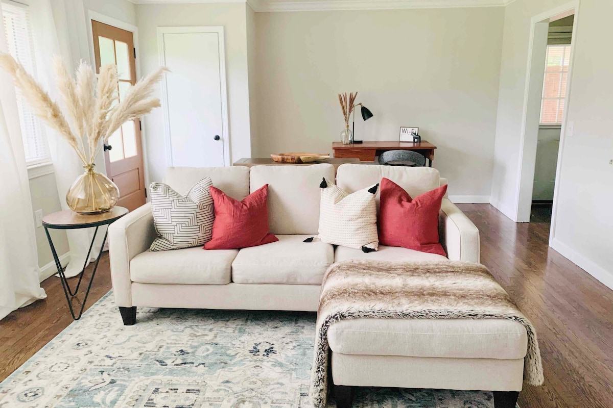 Welcome to your Greenville getaway! Minutes to downtown, GetawayGVL is a designer 1950s ranch that offers the conveniences of a hotel with the comforts of home. This bright and airy 3BR, 1.5BA mid-century modern oasis boasts a stunning outdoor space with yard games for entertaining, a dedicated desk for working, and an updated kitchen for cooking. You're only minutes away from a walk on the Swamp Rabbit Trail, dinner by the Reedy River, or a concert at The Well! Book your getaway today!