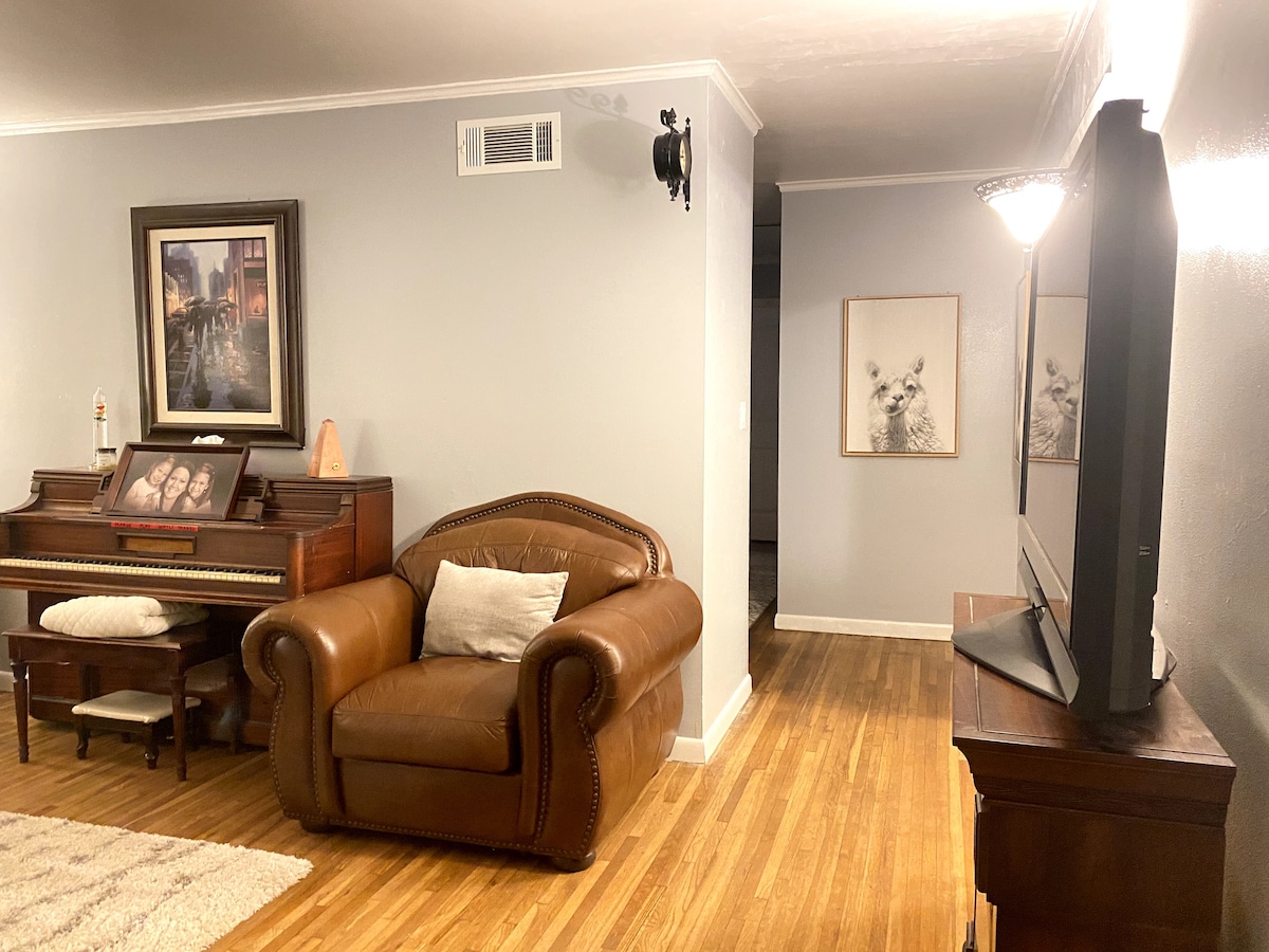 Bienvenue au cœur du Rose District ! Notre maison de 3 chambres offre 2 salons, une cour clôturée et des extras amusants comme une piscine, une table de ping-pong, un jeu de poches et un foyer. À l'extérieur de la porte arrière se trouve un magnifique parc avec des terrains de basket, de pickleball, de tennis et une roseraie. Profitez d'un café de qualité supérieure avec notre machine à expresso. Nous nous efforçons d'offrir le séjour le plus propre et le plus confortable à Broken Arrow ! Cordialement, Adam et Kara