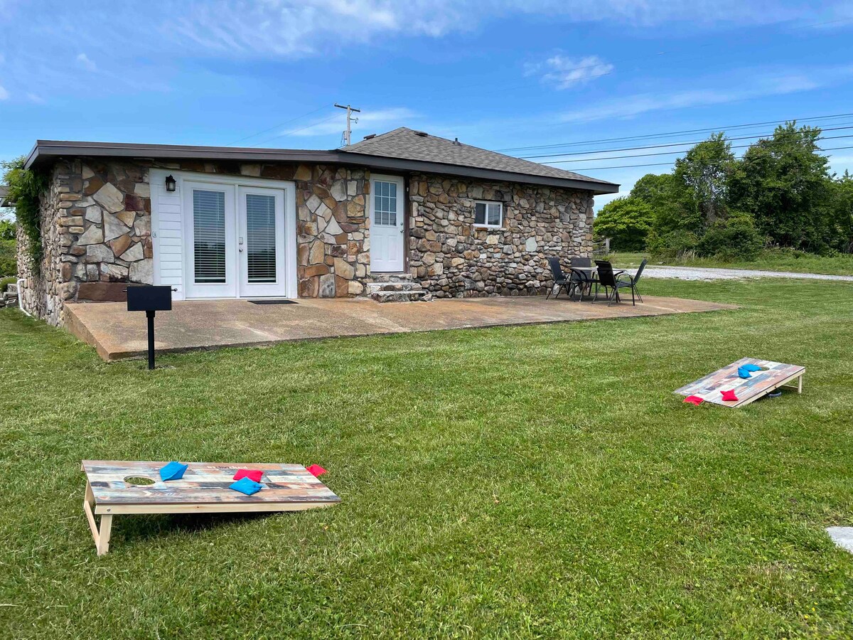 Incroyable cadre de cottage de campagne sur Mountain Cove Farms dans un cottage rustique original (vers les années 1940) avec un mobilier moderne à l'intérieur. Nous sommes une station balnéaire nichée dans la vallée entre Pigeon Mountain et Lookout Mountain, à seulement 30 miles de Chattanooga, Tennessee. Nous sommes entourés de 28 000 acres de faune naturelle - spéléologie, randonnée, camping, chasse, etc. Notre complexe propose un parcours de golf disc de 18 trous et un magasin de campagne (bureau) sur la propriété ! Venez vous détendre à Mclemore Cove !