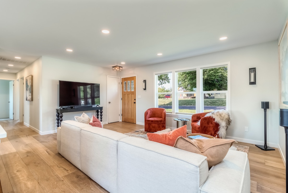 CASA LUNA ~ Bienvenue dans notre bungalow de luxe avec plancher en bambou, équipements modernes et un bain à remous Hot Springs à 52 jets. Offrez-vous une douche à effet pluie de type spa avec des carreaux muraux italiens texturés effet pluie. Deux lits Queen Size dans des chambres verrouillables avec fenêtres et verdure. Cuisine, bar et salle à manger ouverte avec appareils électroménagers haut de gamme et divertissement sur une télévision 4K de 65 pouces. Porche arrière spacieux pour la vie en plein air et jacuzzi privé. Découvrez la relaxation ultime à quelques pas de WWU et à 5 minutes en voiture du centre-ville de Walla Walla !