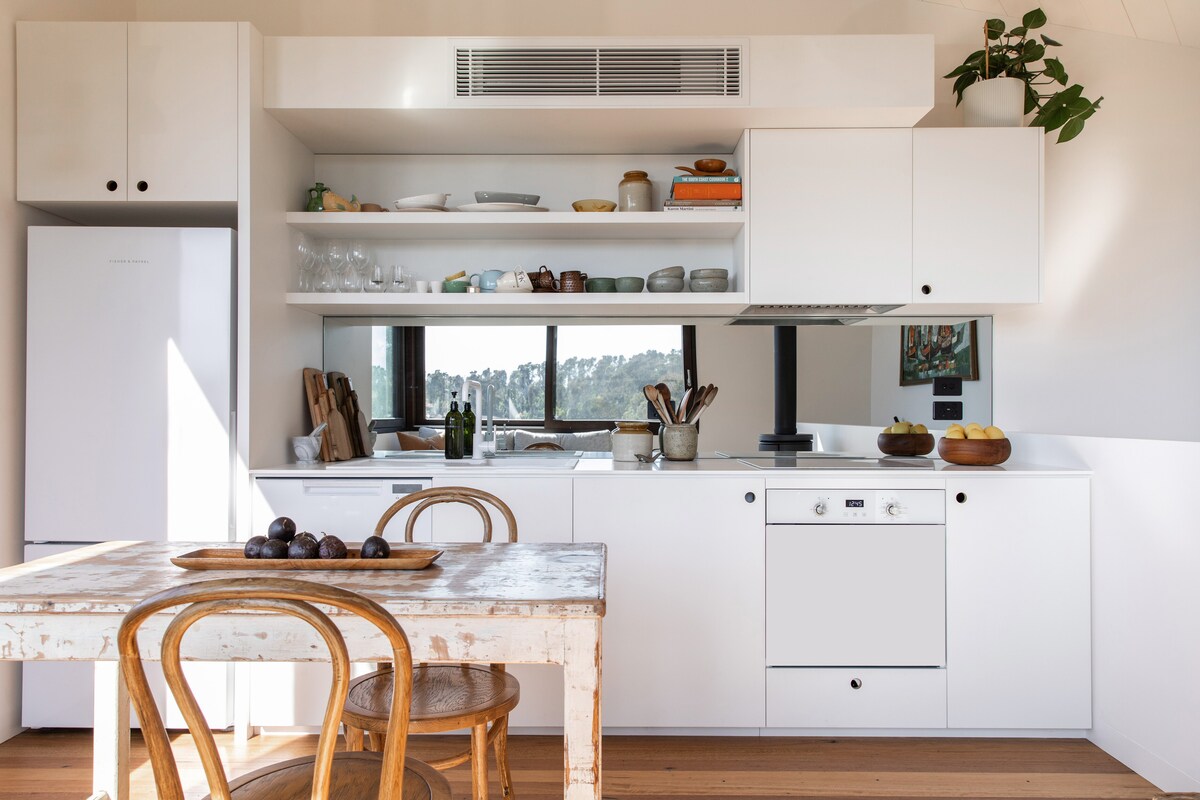 Magnifique maison d'hôtes privée d'une chambre, idéale pour une escapade romantique. Elle dispose d'une salle de bain moderne et élégante avec une grande douche, d'une buanderie européenne et d'une cuisine entièrement équipée, pour ceux qui aiment passer une nuit paisible. Sirotez un café sur la véranda tout en vous imprégnant de la sérénité de la brousse indigène, avec le chant des oiseaux dans l'air et la possibilité d'apercevoir un kangourou ou un échidné errant. La plage immaculée de Tathra, des criques paisibles et des sentiers de randonnée et de vélo pittoresques à quelques minutes. Détente parfaite.