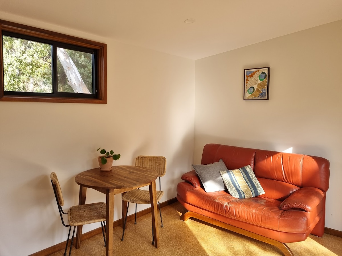 Ce studio indépendant sur Dja Dja Wurrung Country est niché sous notre maison. C'est un espace totalement séparé et privé, climatisé, à double vitrage et avec son propre parking et son propre accès. Il est à distance de marche du centre-ville, du Mill Complex, du Bridge Hotel et des jardins botaniques ; et à seulement 7 minutes à pied de la gare. Profitez d'une vue imprenable sur l'est depuis le salon, la chambre et votre balcon privé à travers la ville jusqu'à Leanganook.