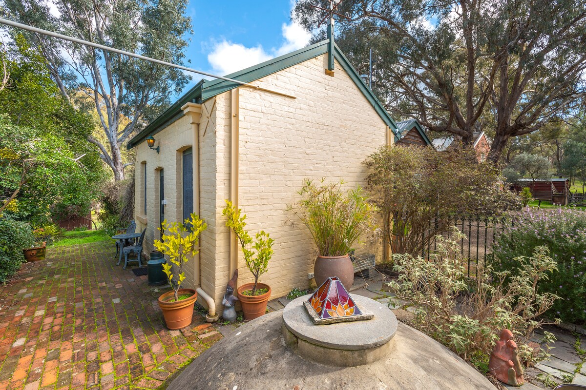 Bâtiment historique indépendant sur notre propriété de 12 acres « Claremont » (c. 1857), le Garden Cottage a été entièrement rénové pour offrir un hébergement unique dans un cadre magnifique, paisible et historique. Le logement est totalement privé, avec un lit Queen Size, une salle de bains privative et des équipements de base pour la préparation des aliments (réfrigérateur, micro-ondes, grille-pain et bouilloire). Il dispose d'un système split pour le chauffage et la climatisation. Le Garden Cottage se trouve à environ 3,4 km du cœur de la ville de Castlemaine et à quelques pas des magnifiques jardins botaniques.