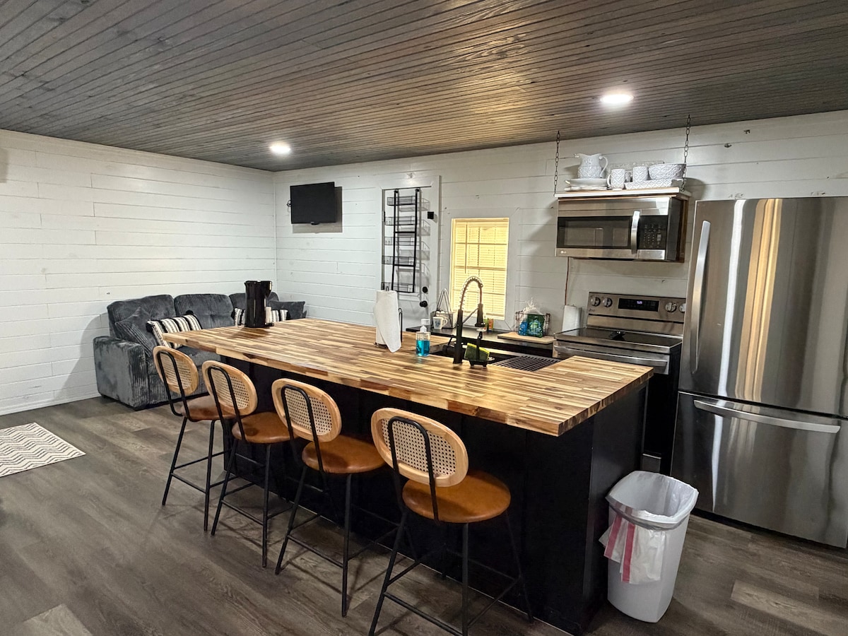 Modern meets rustic in our brand-new three bedroom, two bathroom cabin with all the comforts of home. This unique, two-story cabin was a family project from the ground up, completed in 2025. We enjoyed designing this guest house and hope you find it a rejuvenating space. The cabin is perfect for a weekend getaway or a peaceful midweek escape. Relax and enjoy birds, squirrels, rabbits and the occasional deer from the deck or upper balcony.