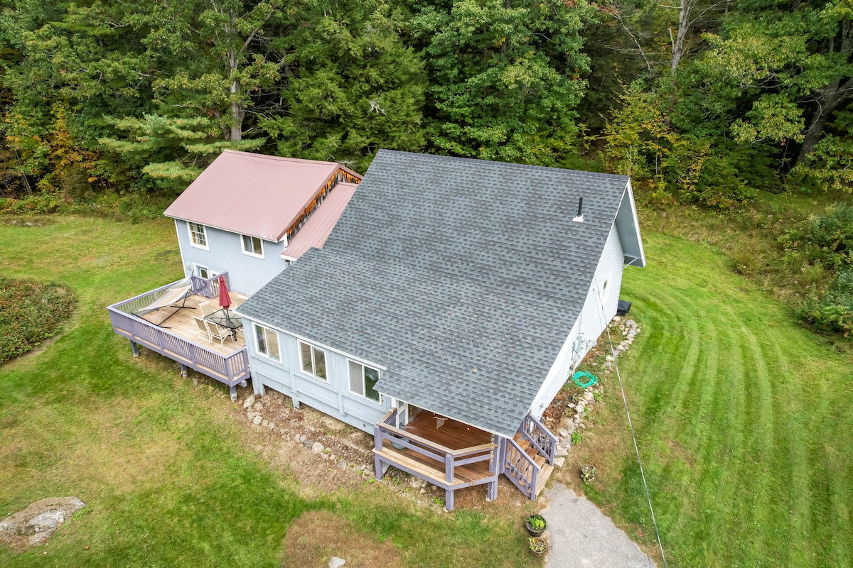 Cette retraite dans une cabane de la région du lac Sunapee est parfaite pour les romantiques, les artistes, les écrivains, les amateurs de plein air, les jardiniers, les amis et la famille. Idéalement situé entre les meilleurs lacs et montagnes de la région, pratique pour les attractions de la région et les activités de plein air. Pourtant, le chalet ressemble à une destination en soi, où vous pourrez vous détendre, vous ressourcer et vous reconnecter. Installez-vous confortablement près de la cheminée en pierre, détendez-vous sur le porche, contemplez la nature, lisez, écoutez, jouez, cuisinez, observez les étoiles et profitez simplement d'être là  ! Numéro de licence M&R : 063685
