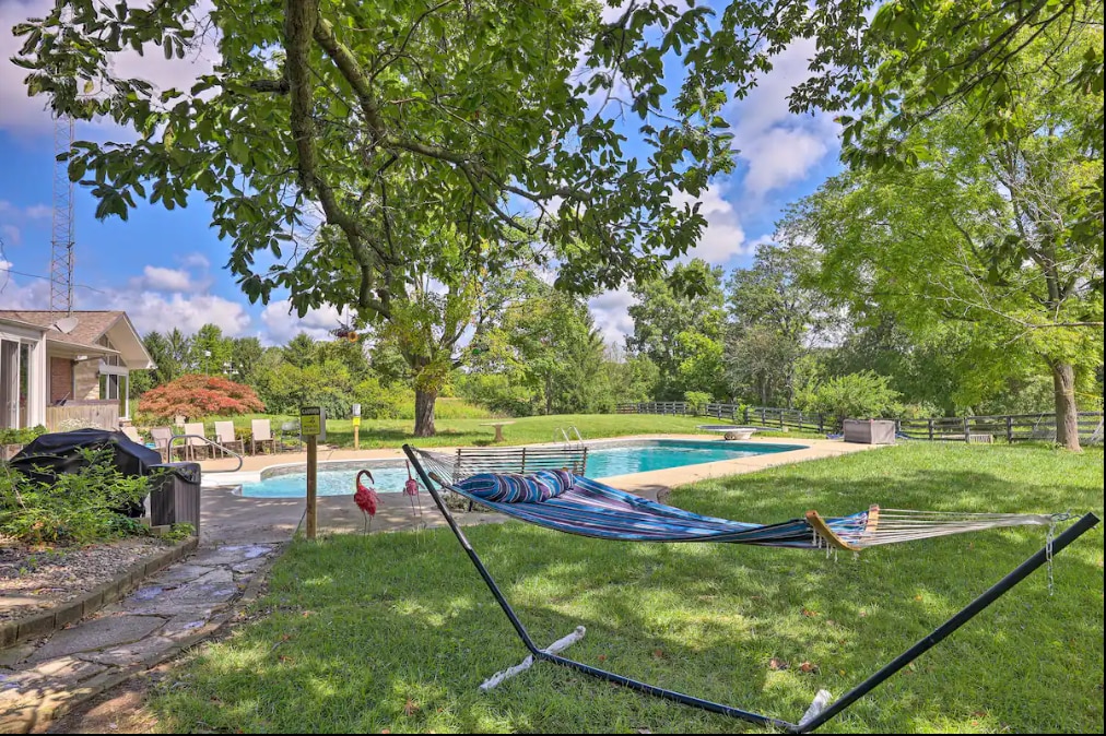Ressourcez-vous dans ce logement inoubliable niché en pleine nature dans une ferme au cœur du comté de Warren. Deux chambres privées de 900 pieds carrés, 1 salle de bain, un salon et une kitchenette donnant sur 18 acres d'intimité. À quelques minutes du lac Caesar's Creek et des sentiers de randonnée, du Renaissance Festival, des sentiers de canoë-kayak et de vélo de la rivière Little Miami, de Kings Island et du World Equestrian Center. Juste entre Cincinnati et Columbus, à quelques minutes de l'I-71.