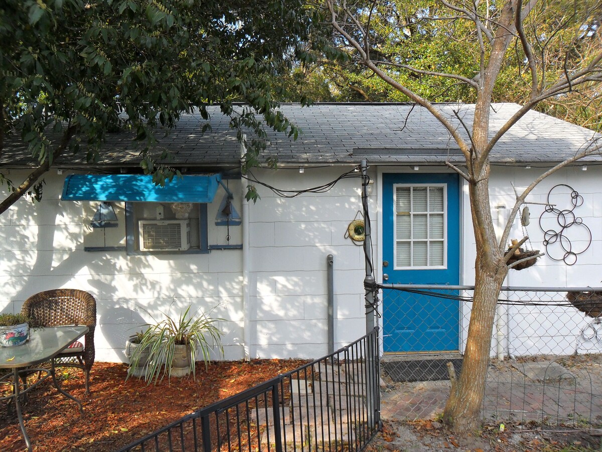 Niché dans un jardin privé calme derrière la maison principale. Stationnement hors rue et entrée privée. Quartier sûr et convivial d'East Hill. Vous pouvez marcher jusqu'à une boulangerie et un pub. Entre le centre-ville de Pensacola et l'aéroport. À 15 minutes en voiture des plages. Signal Internet sans fil fort. Télévision avec antenne. Chauffage « cheminée » Amish. Kitchenette avec réfrigérateur moyen, évier, micro-ondes, grille-pain, gril George Foreman, plaque de cuisson conçue pour cuire n'importe quoi et ustensiles de cuisine. Gril sur le patio. Équipement de plage.