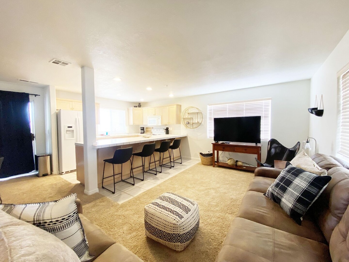 Faites de cette maison de ville de 4 chambres et 2,5 salles de bain votre maison loin de chez vous ! Idéalement située et à proximité de toutes les activités de plein air incroyables pour lesquelles le sud de l'Utah est connu, cette maison est disponible en location à la nuit ou à la semaine (2 nuits minimum) et peut accueillir 11 personnes. Amenez votre famille et vos amis et rassemblez-vous dans le séjour où vous trouverez une télévision 4K Roku de 55", des jeux et plus encore ! Vous y trouverez également une cuisine entièrement équipée qui s'ouvre sur un patio avec un barbecue. Le club-house à proximité et 2 piscines chauffées vous attendent.