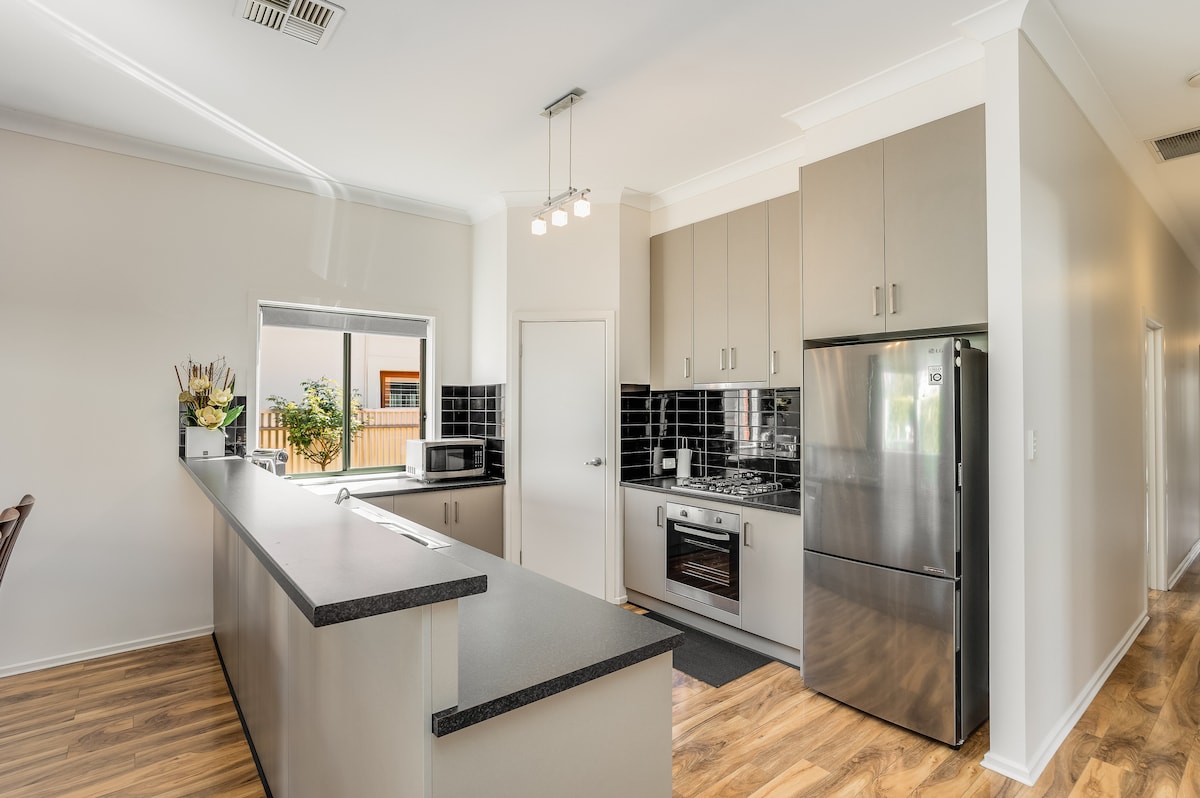 Profitez de votre séjour dans cette maison de quatre chambres récemment construite, très spacieuse et bien aménagée avec bureau, à seulement quelques minutes en voiture de toutes les attractions incroyables qu'Adélaïde et ses régions environnantes ont à offrir, notamment : Aéroport : 10 min ; Centre de divertissement : 3 min ; Coopers Stadium (football) : 2 minutes ; City et Adelaide Oval : 10 min ; Grange Golf Club (Liv) : 10 min ; Plage : 10 min ; Adelaide Hills : 30 minutes ; Barossa : 45 minutes ; McLaren Vale : 45 minutes ; Bus métro : 100 m ; et Commerces : 300 m.