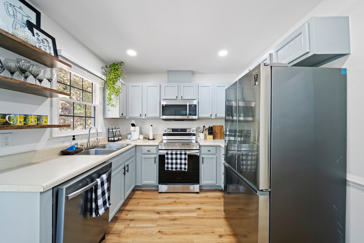À moins d'un mile du centre-ville de Raleigh, ce pied-à-terre est meublé avec goût. Cuisine complète, lave-linge/sèche-linge, beaucoup de lumière naturelle, deux téléviseurs, allée et un patio avec fontaine et vue sur le jardin. Salle de bain récemment rénovée et extérieur fraîchement peint. Prenez un Uber pour vous rendre au centre-ville et explorer les musées, les restaurants et la vie nocturne. Café et expresso gratuits. Les séjours de plus d'un mois comprennent un nettoyage gratuit toutes les deux semaines.